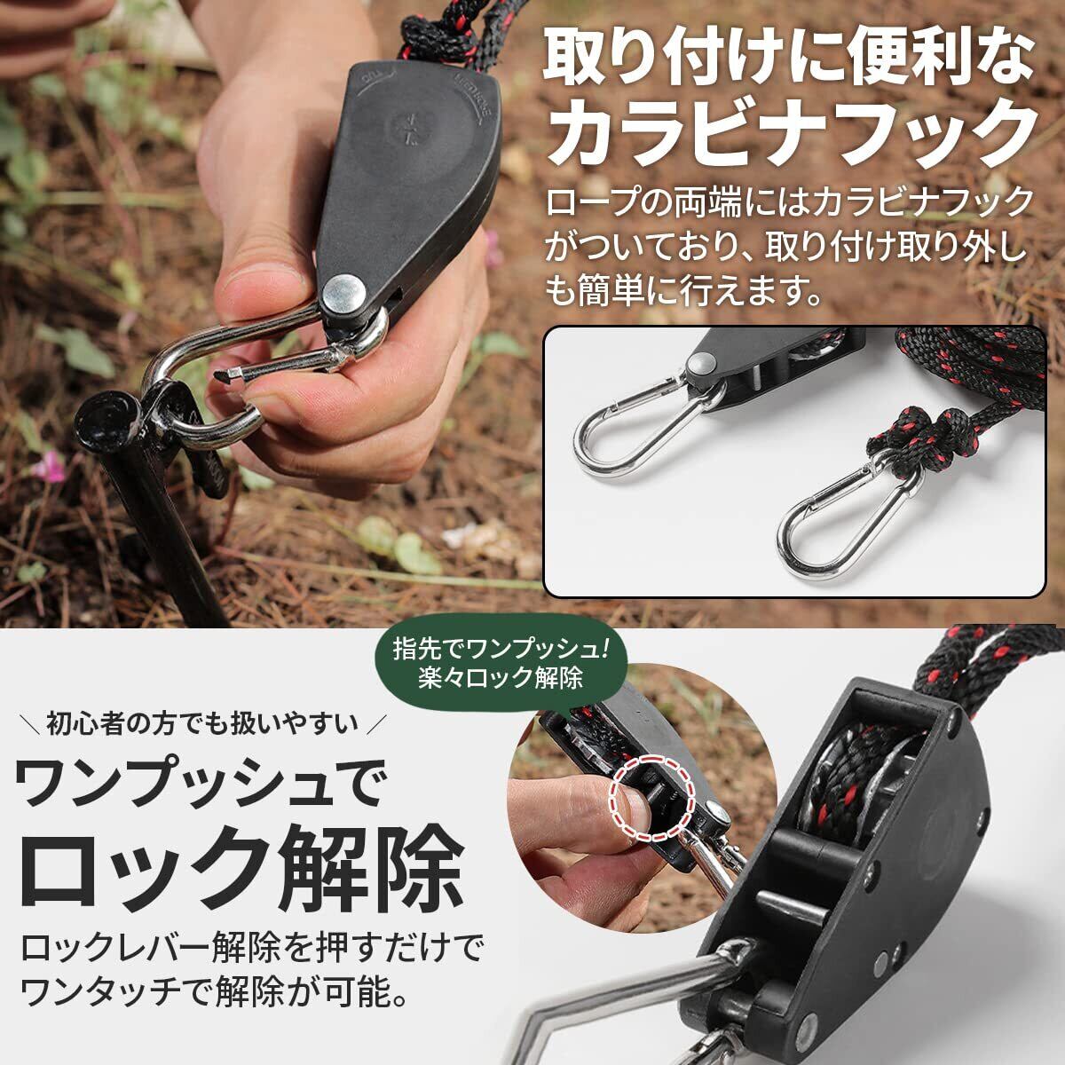 【特価セール】(ラグラス) ロープキャンプ テントロープ タープロープ ロープラチェット パラコード 自在ロープ 自在金具 調整自由 キャンプ用品 タープ設営 テント設営 時短 ロープテンショナー 4個セット