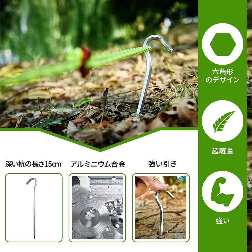 【打ちやすい&六面体】アルミニウム合金材質で、非常に丈夫、硬い土壌でも挿入しやすいです。硬い土、凍土、砂利層などに塗布すると、折れたり曲がったりしません。曲げなデザインは、リンクロープやフックロックでつなぐと滑り止め効果があります。六面体のデザインしたペグが曲がりにくく、十分な支持力があるので、アウトドアキャンプでも安心して使えます!