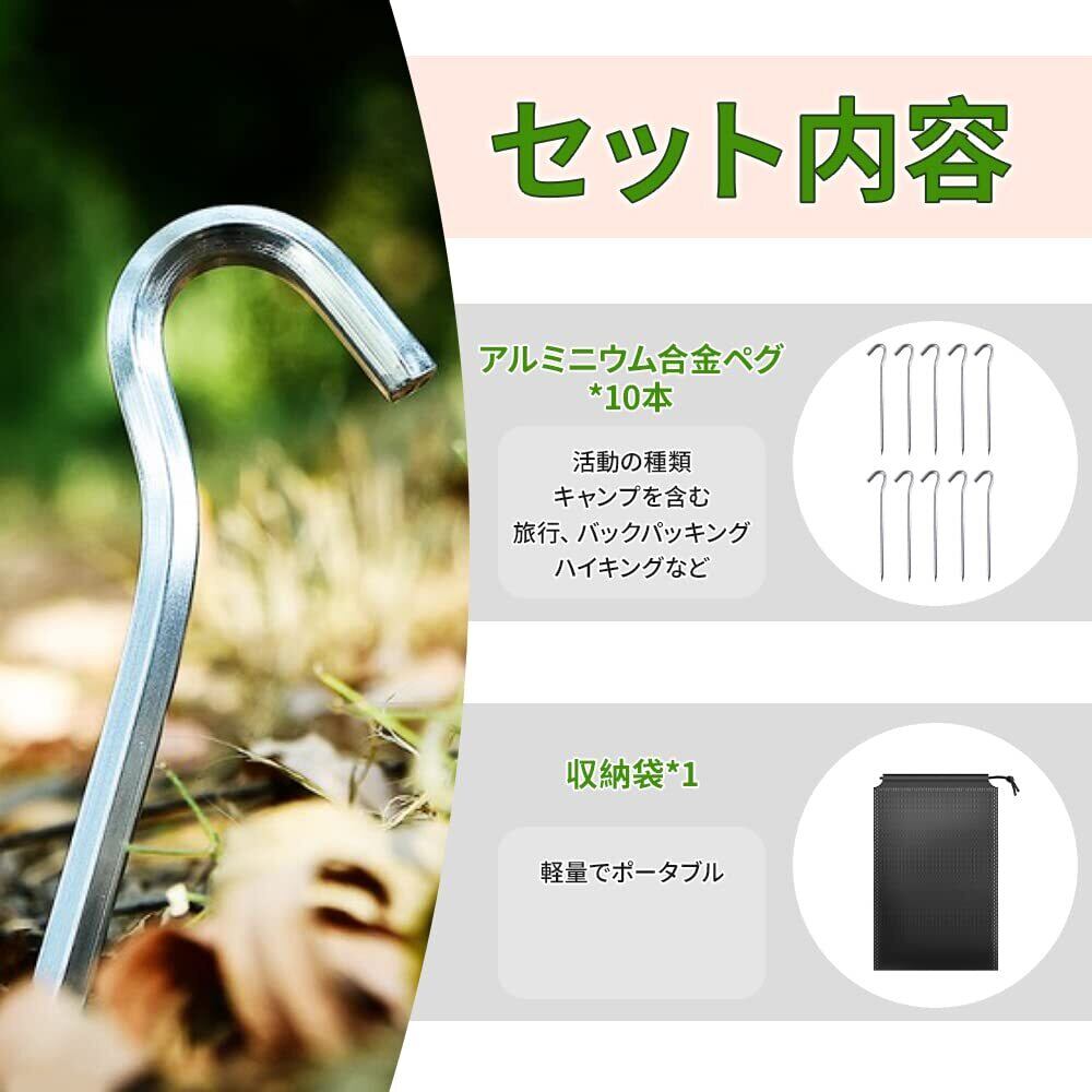 UPF ペグ 10本 テントペグ アルミペグ キャンプ ペグ タープペグ 軽量ペグ アルミニウム合金製品 テントくぎ 硬い土 砂地 草地用 ソリッドステーク ペグバッグ付き 携帯しやすい テント用 キャンプ用品
