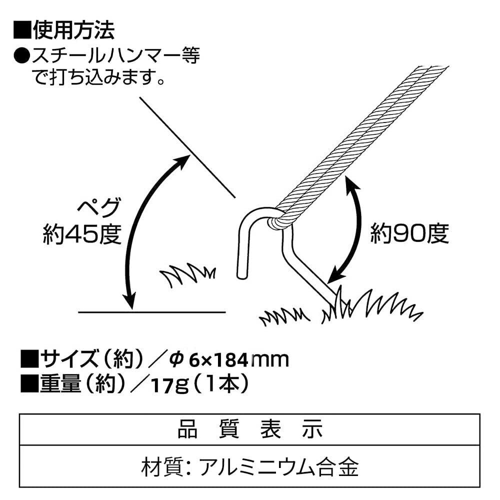 【サイズ】テントペグの大きさは約 180mm(長さ)x 6mm(直径)。約17g/本のペグです。セット内容はペグ*10本、収納袋付き