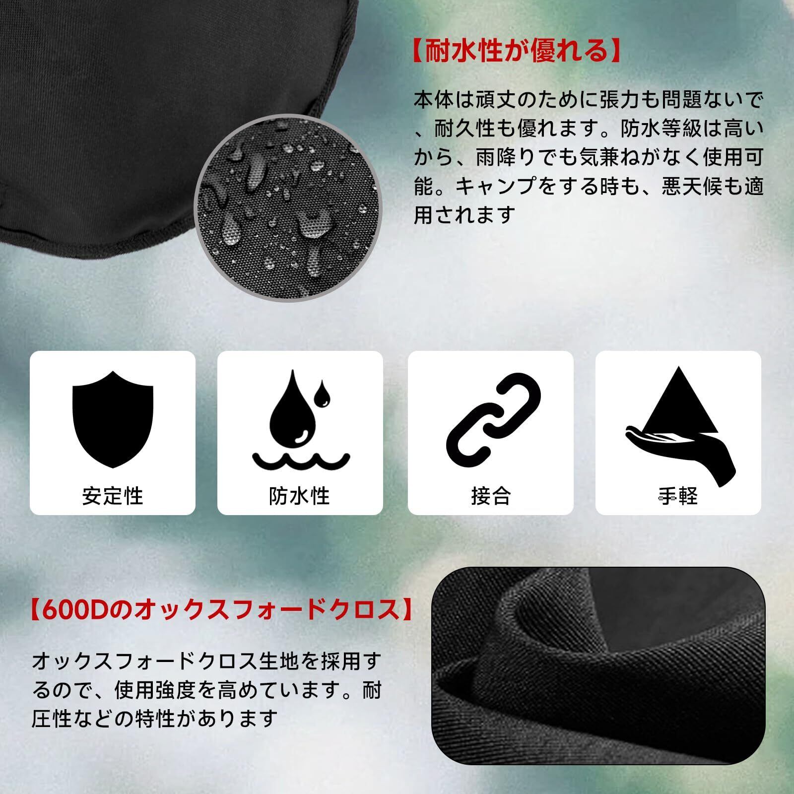 【高品質·耐久性のテントハット】弊社の製品オックスフォードクロス生地を採用するので、使用強度は高いことに加え、耐圧性などの特性があります。耐久性を心配しなくてもよいです。また、防水等級は高いから、雨降りでも気兼ねがなく使用可能。キャンプをする時も、悪天候も適用されます。