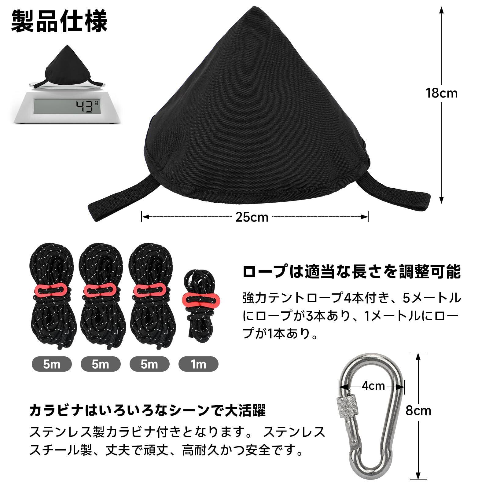 KOMCLUB ワンポールテント タープ 連結 タープ連結アダプター トンガリハット テントハット 帽子 キャンプ用品 タープ 接続用 タープ連結ハット オックスフォードクロス とんがりハット 難燃 撥水 頑丈 耐久 カラビナ·ロープ付 軽量 コンパクト タープアダプター キャンプ アウトドア 黒