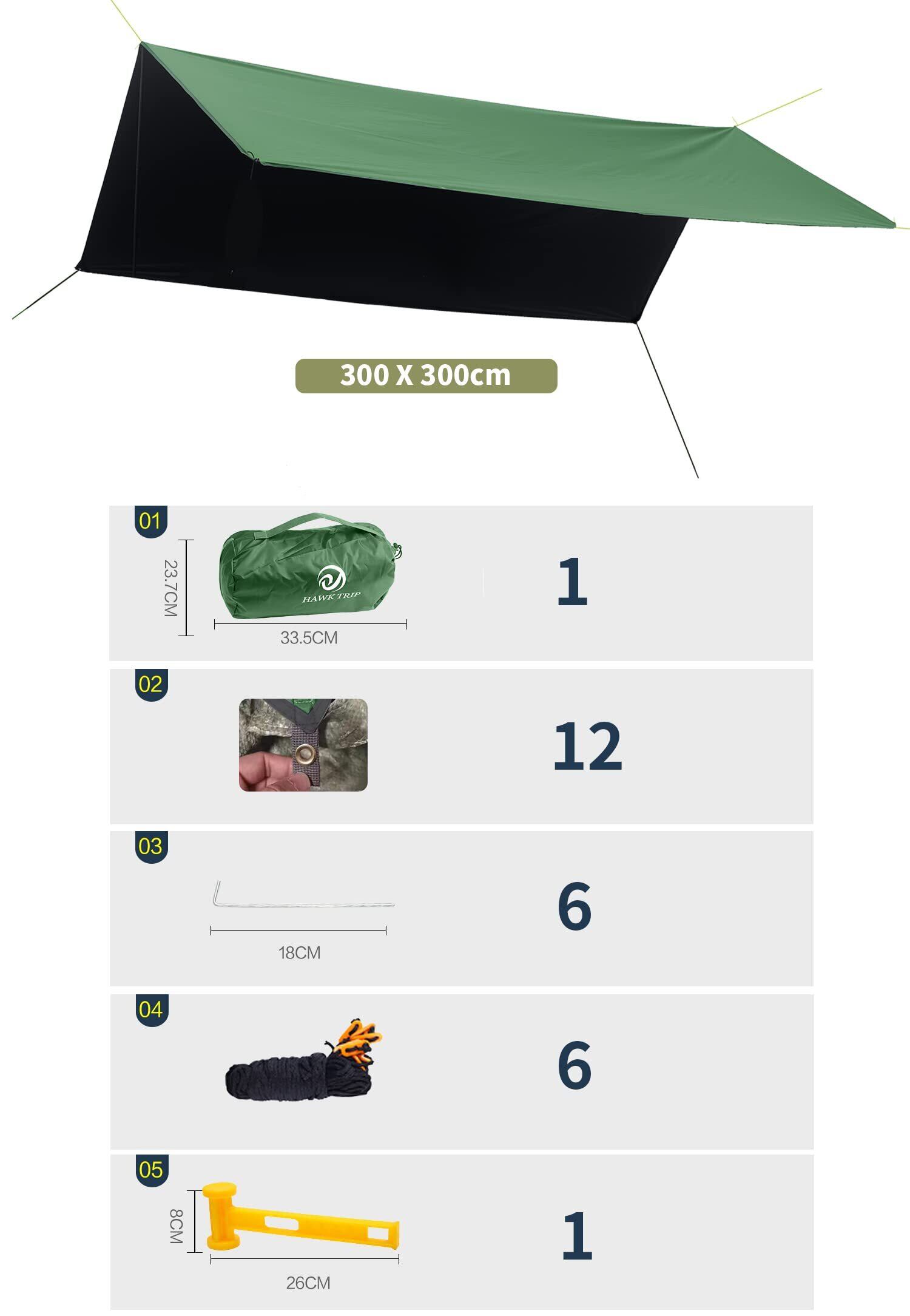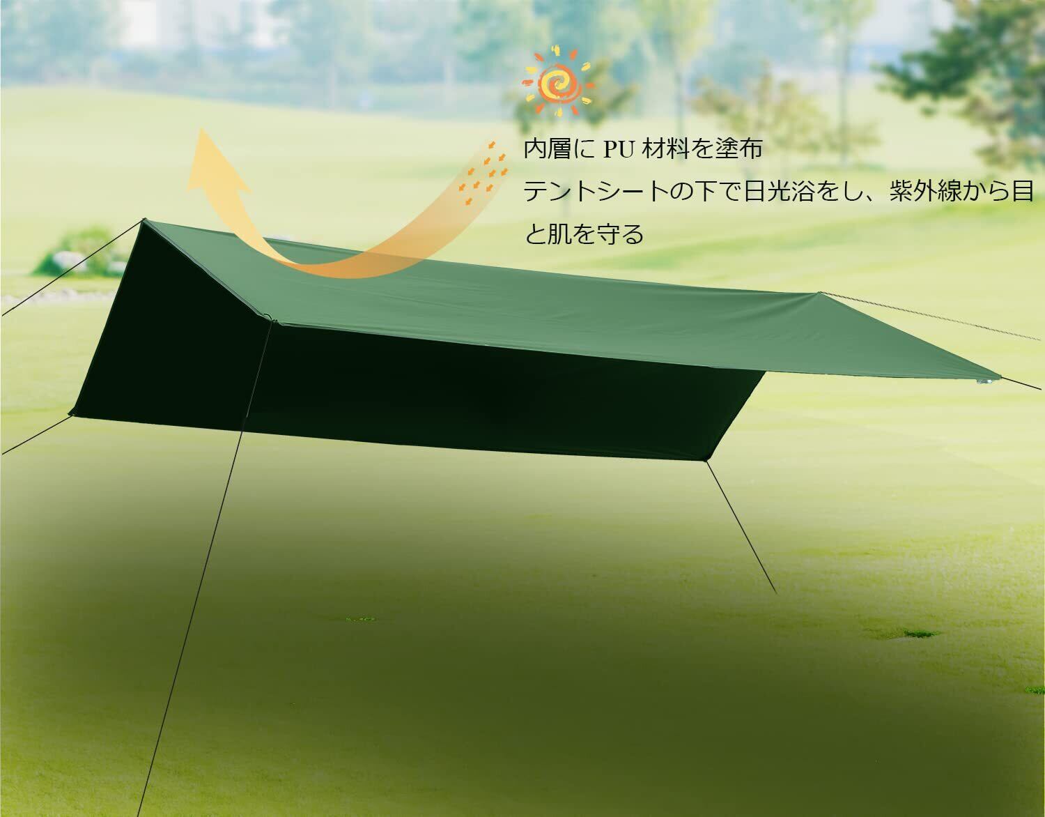 ポータブル多機能タープ キャンプ天幕テント防水棚防水棚軽量 遮熱 遮光 軽量 キャンプ用品リュックサック、トレッキング、ビーチ用 (300*300cm - グリーン)