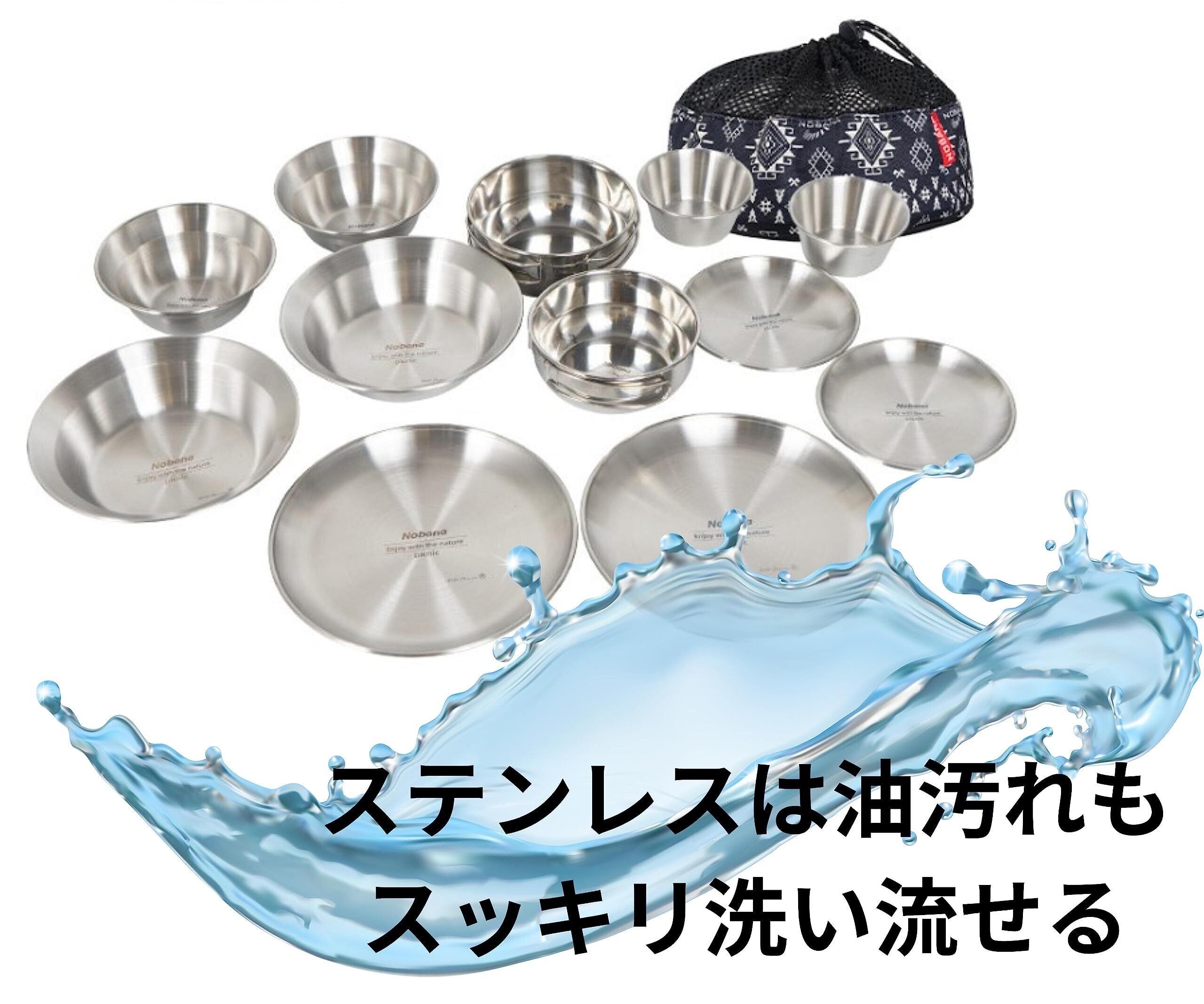 ステンレス 食器は重厚感がありますので丈夫で風に飛ばされたりしません。紙皿を使用したアウトドアの食事と雰囲気が違います