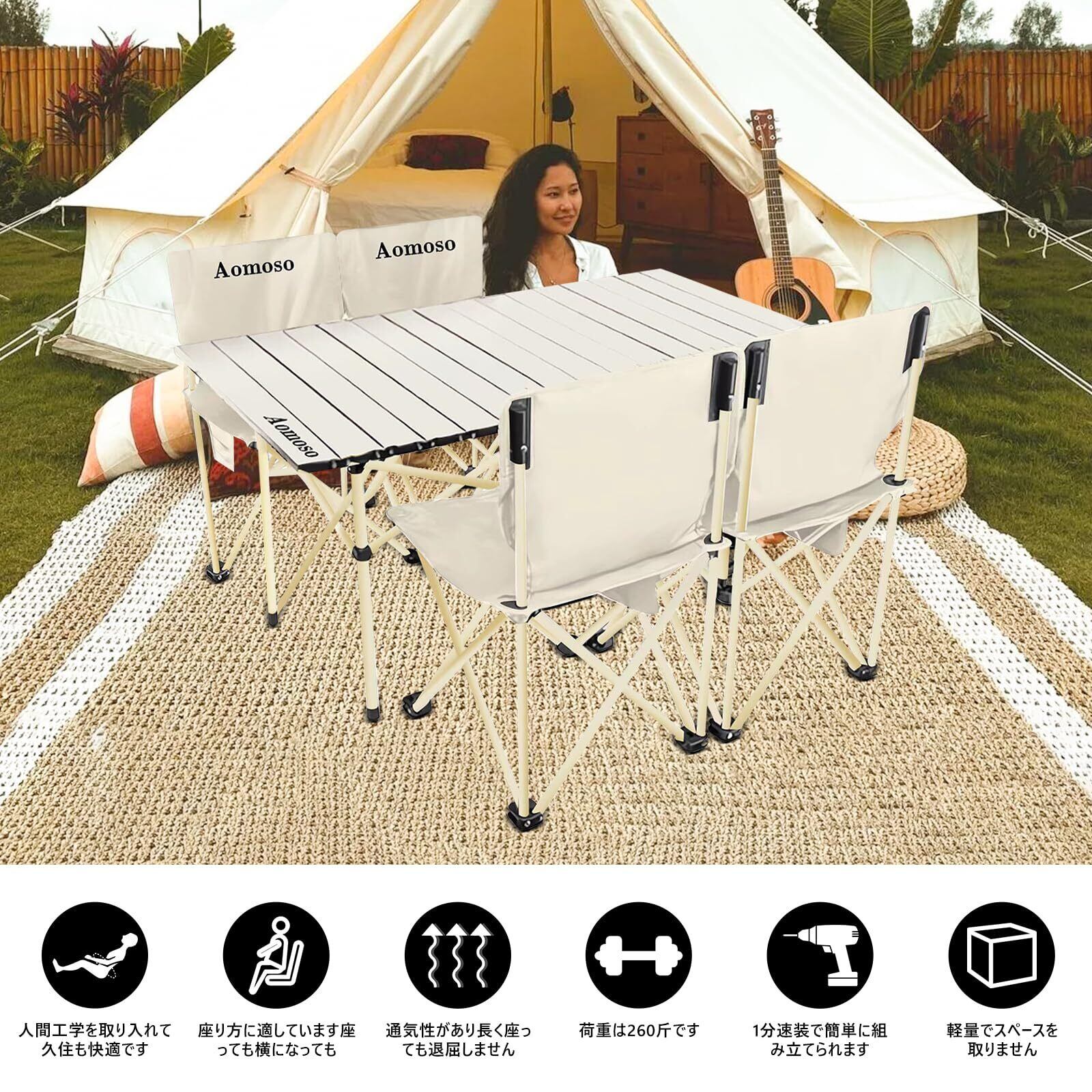 頑丈で耐久性に優れる:高品質な素材を使用し、この屋外テーブル&チェアセットの耐久性と長寿命を保証しています。頑丈なフレームと安定したサポートシステムは重量を支え、安全で快適な利用を提供します。アウトドアパーティーやキャンプ、アウトドアでの作業などにサポートします。
