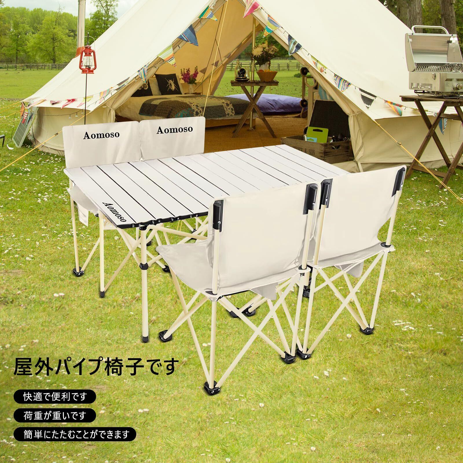 軽量で携帯性に優れる:折りたたみテーブル&チェアセットは、軽量設計で持ち運びや収納が容易です。折りたたんだ後はコンパクトになり、携帯用バッグも付属しているため、いつでもどこでも屋外活動が可能です。バーベキューやキャンピングカー旅行、アウトドアでの食事に最適です。