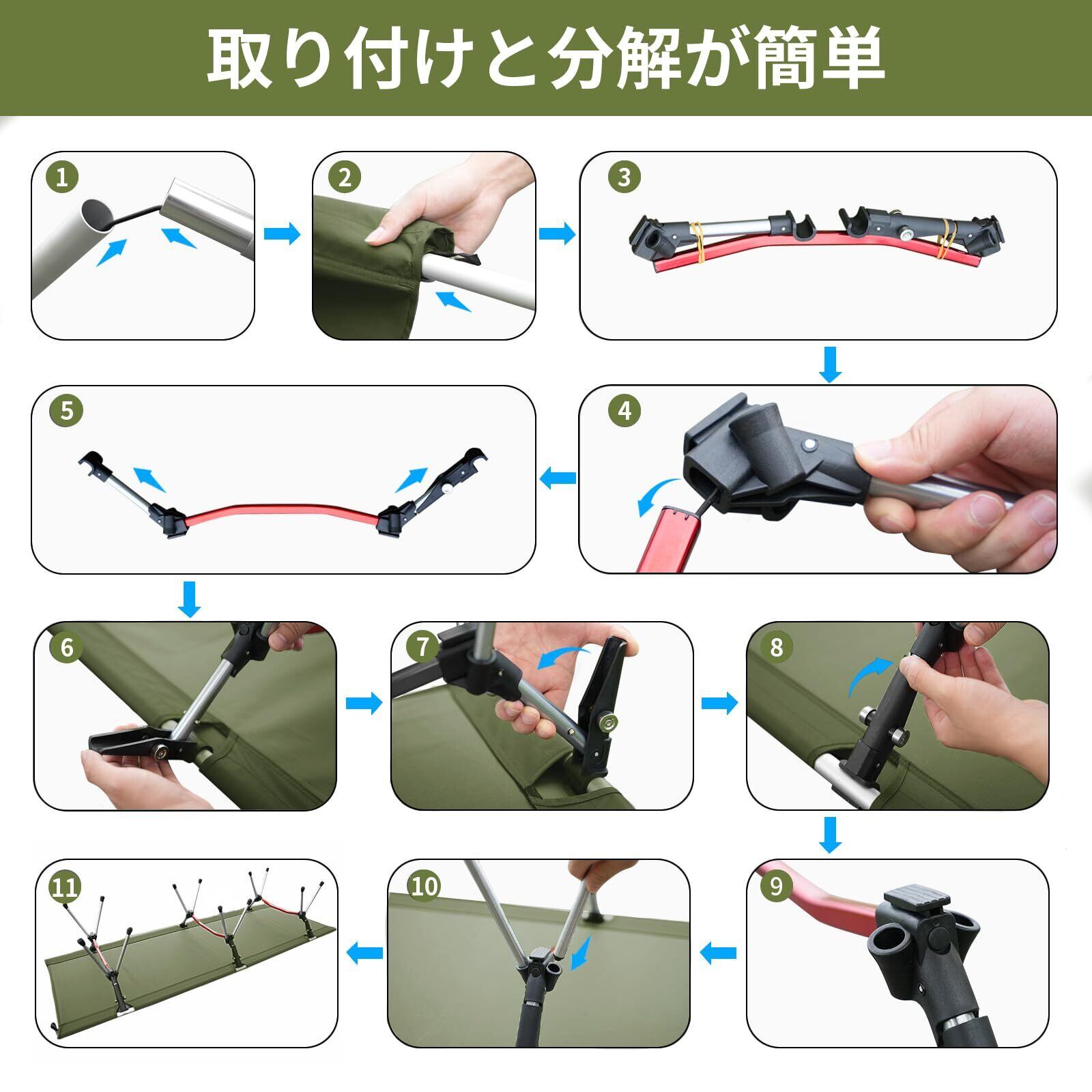 【組み立てが簡単】アウトドアベッドは工具を使わずに非常に簡単に設置でき、女性や子供でも5分で設置できます。 組み立てはとても簡単です。