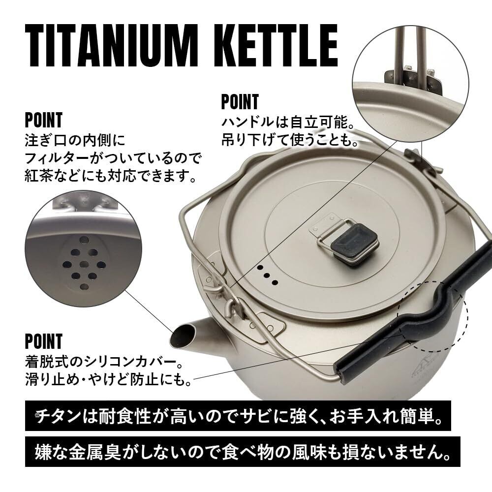 TITAN MANIA(チタンマニア) チタンケトル やかん 700ml 1000ml ケトル ケットル キャンプ キャンプケトル アウトドアケトル チタン 軽量 おしゃれ 直火 ソロキャンプ アウトドア用品 キャンプ用品 収納袋付き (1000ml)