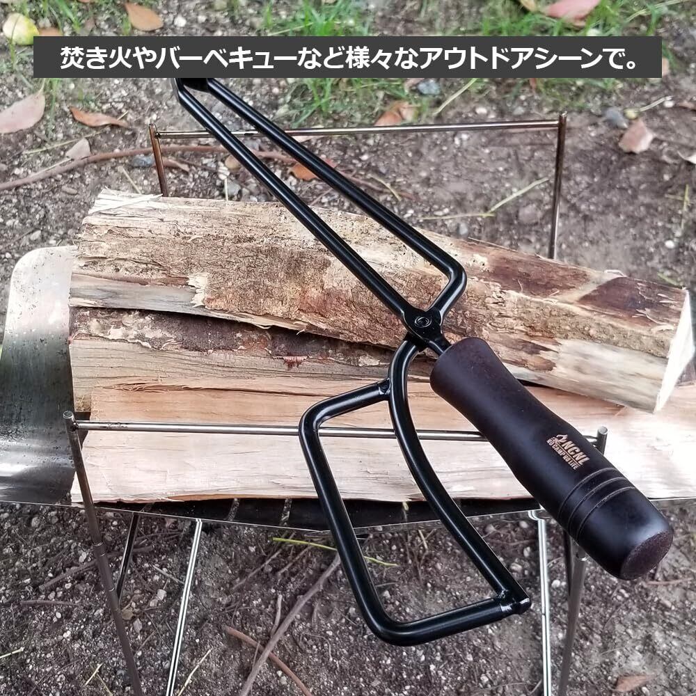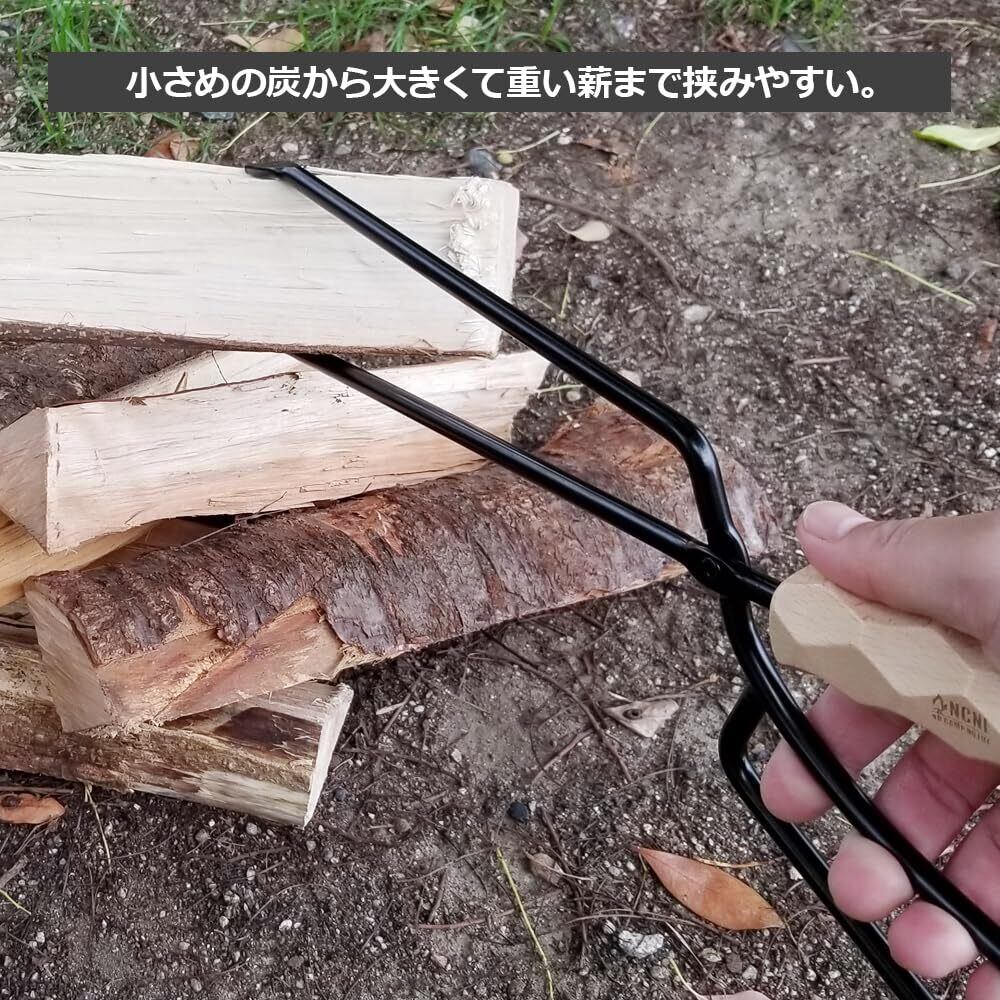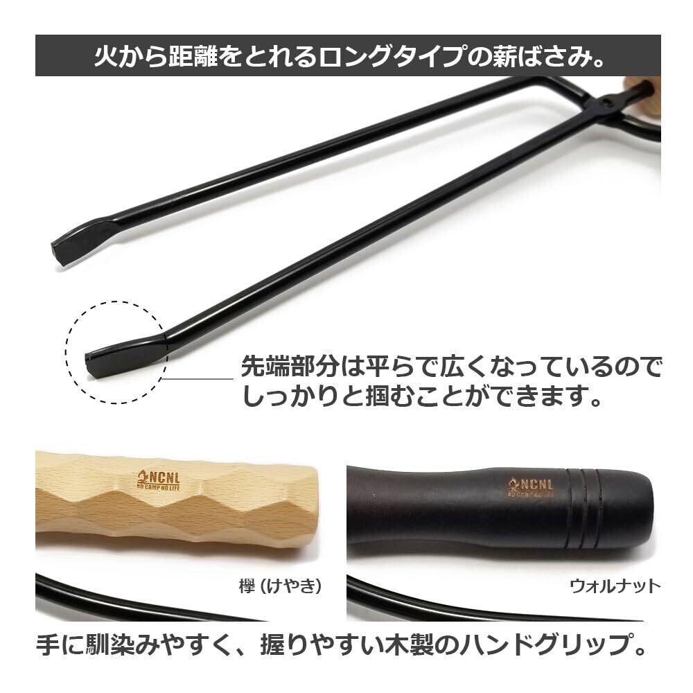 NCNL(NO CAMP NO LIFE) 薪ばさみ トング 炭ばさみ 火ばさみ 木製ハンドル キャンプ バーベキュー 焚き火 ソロキャンプ アウトドア用品 キャンプ用品 暖炉器具 収納ケース付き (ケヤキ)