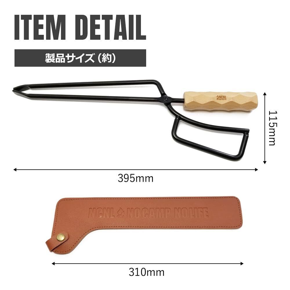 NCNL(NO CAMP NO LIFE)は、デザインや形状にこだわり過ぎて高価になり手が届かないような製品作りはしたくないと考えています。気兼ねなく普段使い出来る、身近にキャンプを感じてもらえるような「価格」「使いやすさ」を重視し、アウトドアを楽しむ全ての方々のお手伝いをする為、様々な商品を提供できるよう大阪より発信しております。 【商品詳細】 サイズ(約):115×395mm 重量(約):397g 材質:スチール(本体)、ケヤキ(ハンドル) 【商品説明】 火から距離をとれるロングタイプの薪ばさみ。焚き火から少し離れて作業ができるので火傷の心配がありません。キャンプや焚火の必需品である火ばさみは、炭や薪を掴むことはもちろん、バーベキューのトングとして、ゴミ拾いや小枝拾いなど手を汚すことなく行えます。 トングの先端部分は平らで広くなっているので、小さめの切炭から重い薪までしっかりと掴むことができます。ハンドル(持ち手)部分は握りやすく手に馴染みやすい木製グリップ。力を先端に伝えることができるので、しっかりと物を移動させることができます。 専用のケース付きなので持ち運びに便利。ベルトループがあるので腰に取り付けることもできます。バックパッキングしやすいサイズなのでソロキャンプやハイキング、お花見やバーベキュー、バイクツーリング、登山や釣りなど様々なアウトドアシーンで大活躍!