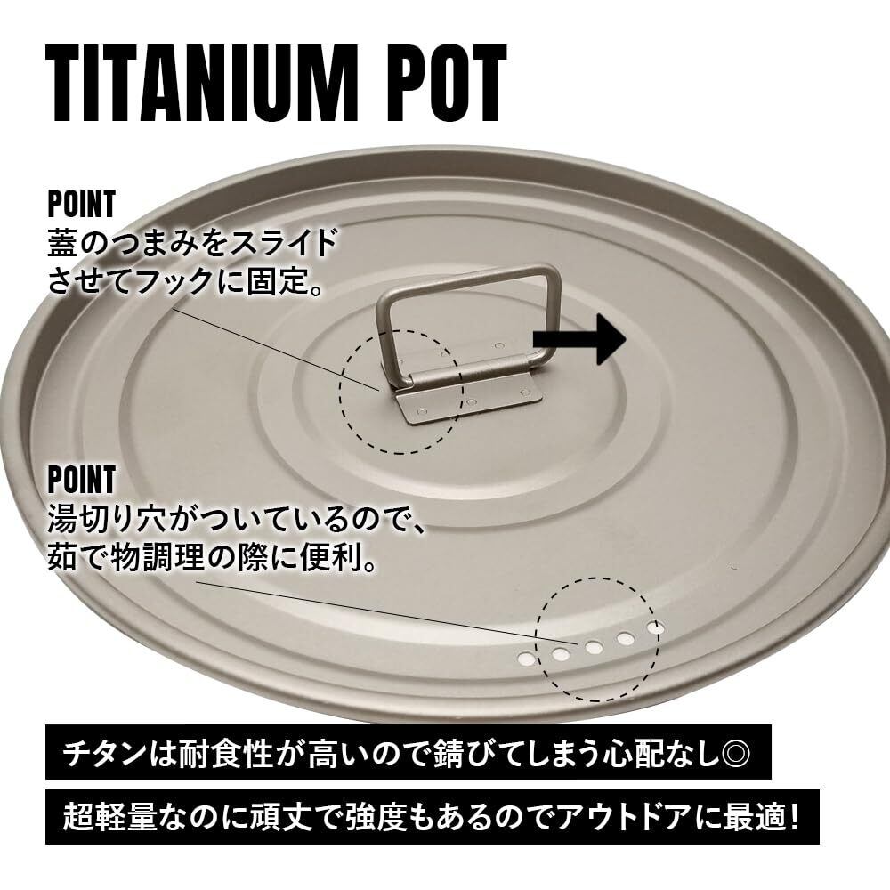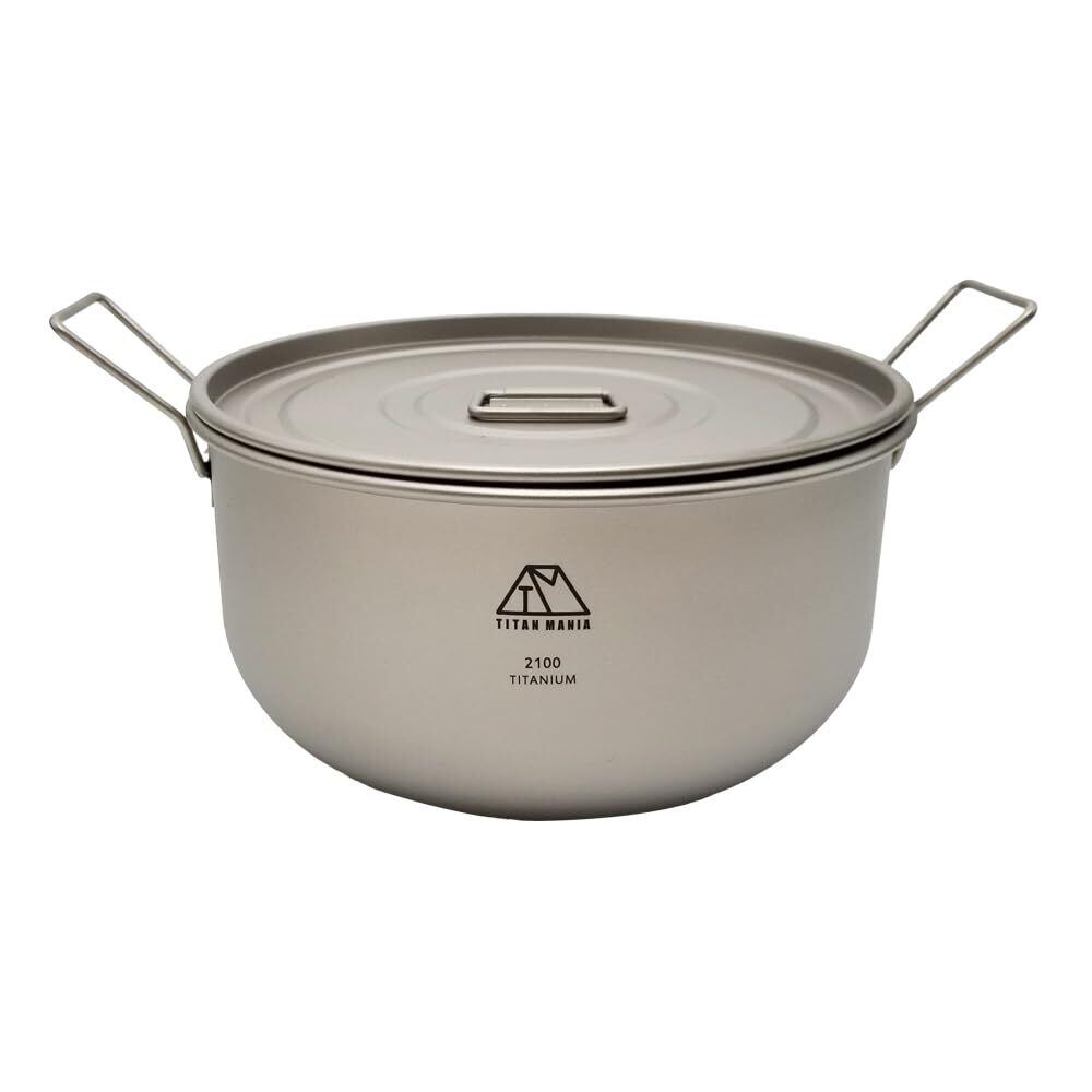TITAN MANIA(チタンマニア) 鍋 2100ml 2.1L 蓋付き チタン製 超軽量 頑丈 直火 両手 折りたたみハンドル付き キャンプ ソロキャンプ アウトドア用品 キャンプ用品 収納袋付き