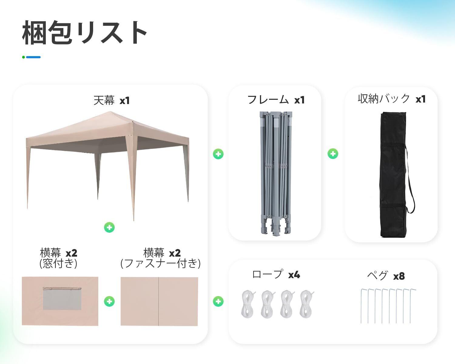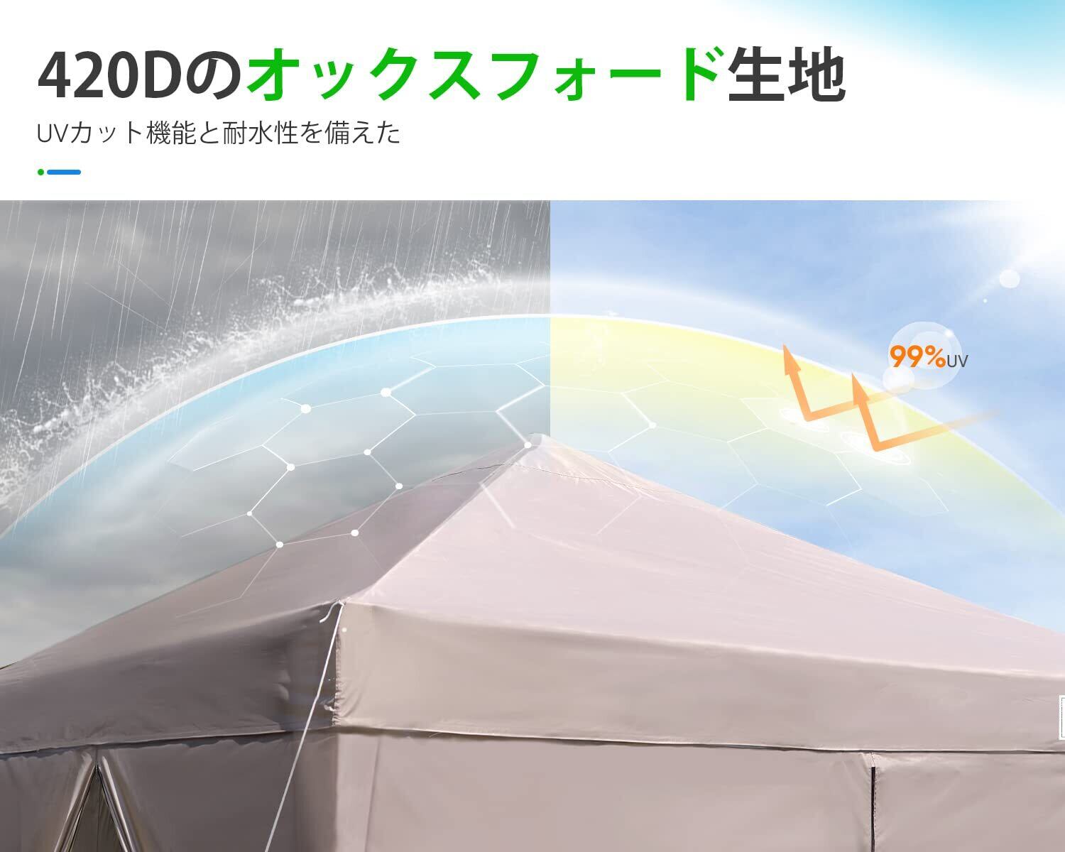 【専用横幕4枚・取り外す可能】天幕と横幕はそれぞれ取り外すことができ、春、夏、秋、冬に使用できます。晴れたら横布を取り外して景色を楽しむことができ、視界が広がります。天幕の生地はコーティングされており、横幕の生地はコーティングされていません。コーナーの布は厚くして、より良く丈夫です。