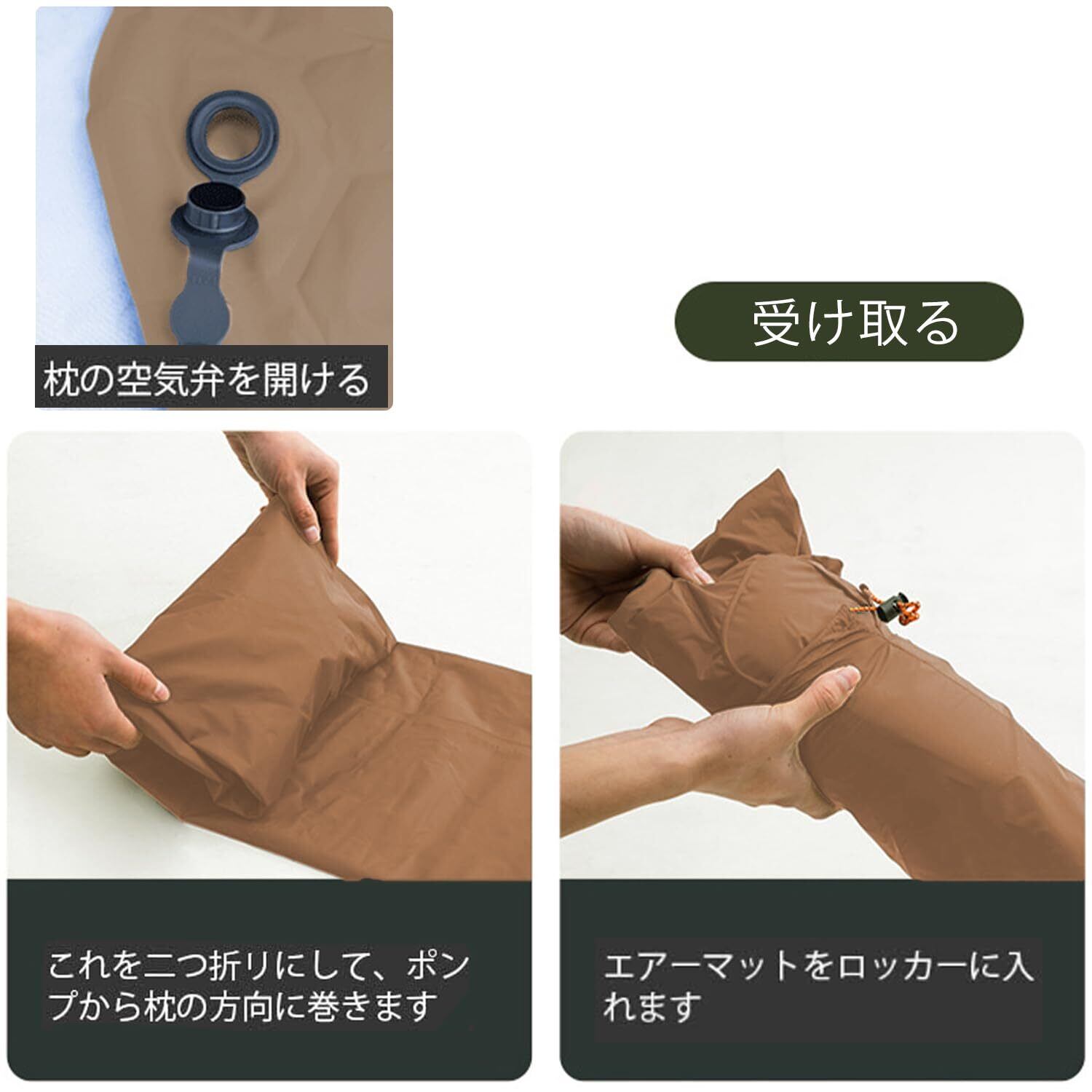 【超軽量コンパクト・迅速撤収】❶ コンパクト:エアーマットは総重量:700g●使用時サイズ:(約)長さ195cm×幅60cm×高さ5cm ●収納時サイズ:(約)20cm×8cm。専用の収納袋が付いているので、収納スペースをとらず、持ち運びも簡単です。❷ 迅速撤収:エアマット枕部の二重空気弁を開けて空気が一瞬に抜き、折り畳んで締めて、非常に便利です。空気の入れやすさも空気の抜きやすさもトップクラス、初心者や撤収作業の効率を求めるキャンパーにオススメです。