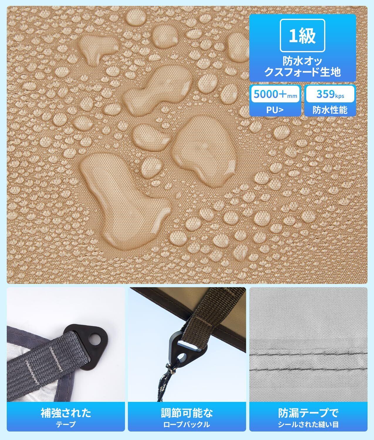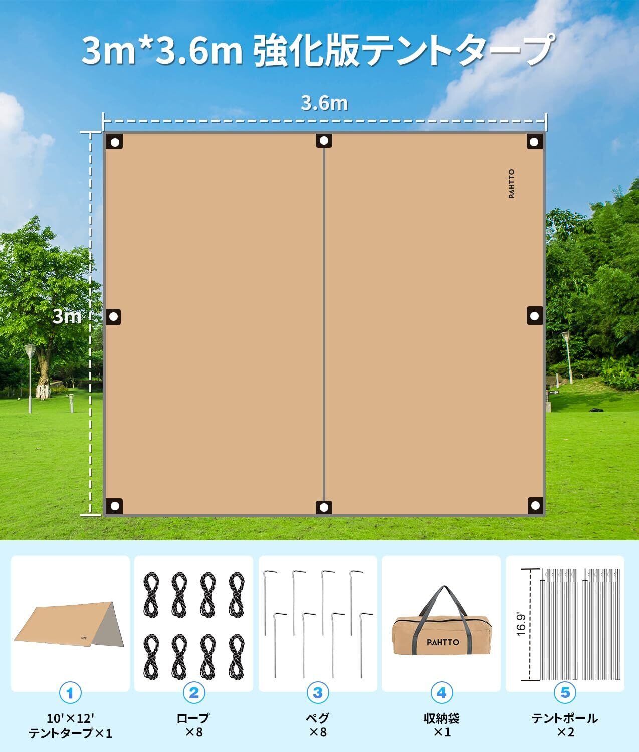 【強化版】 タープテント アウトドア テントタープ キャンプタープ 3 mx3.6 m 防水タープ 日除け 遮熱 遮光 紫外線カット タープ テント アウトドア 軽量 ハイキング ピクニック バックパッキング向け キャンプ用品 高耐水加工
