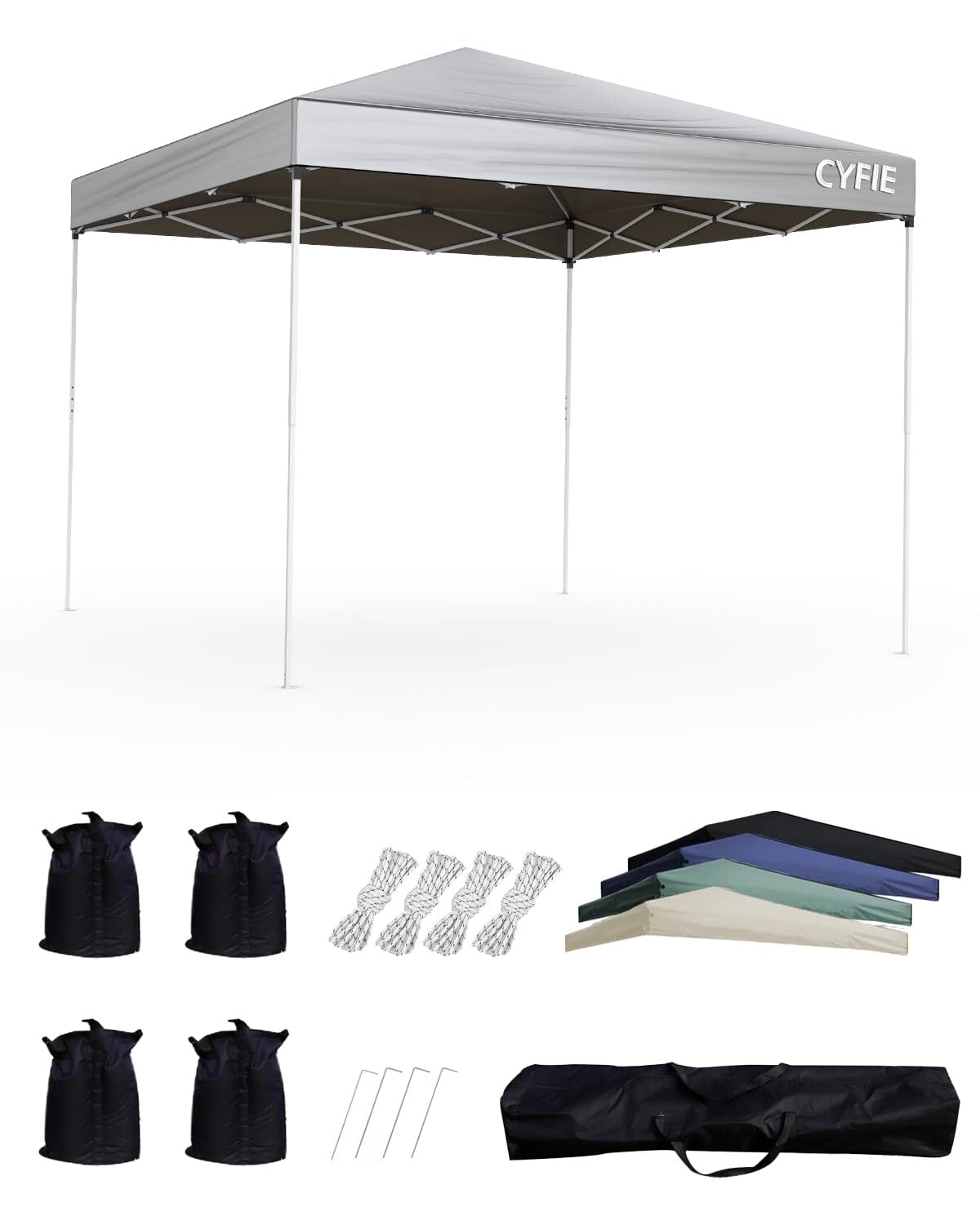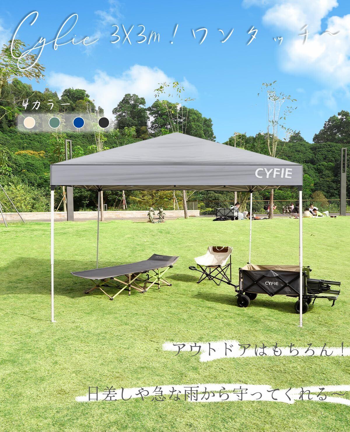 【特価セール】CYFIE タープテント 3段階調節 UVカット ワンタッチ 耐水 キャンプ用品 ワンタッチテント タープ スチールフレーム イベントテント 運動会 業務用 祭り 屋台 アウトドア用 遮熱 (グレー, 3m×3m)