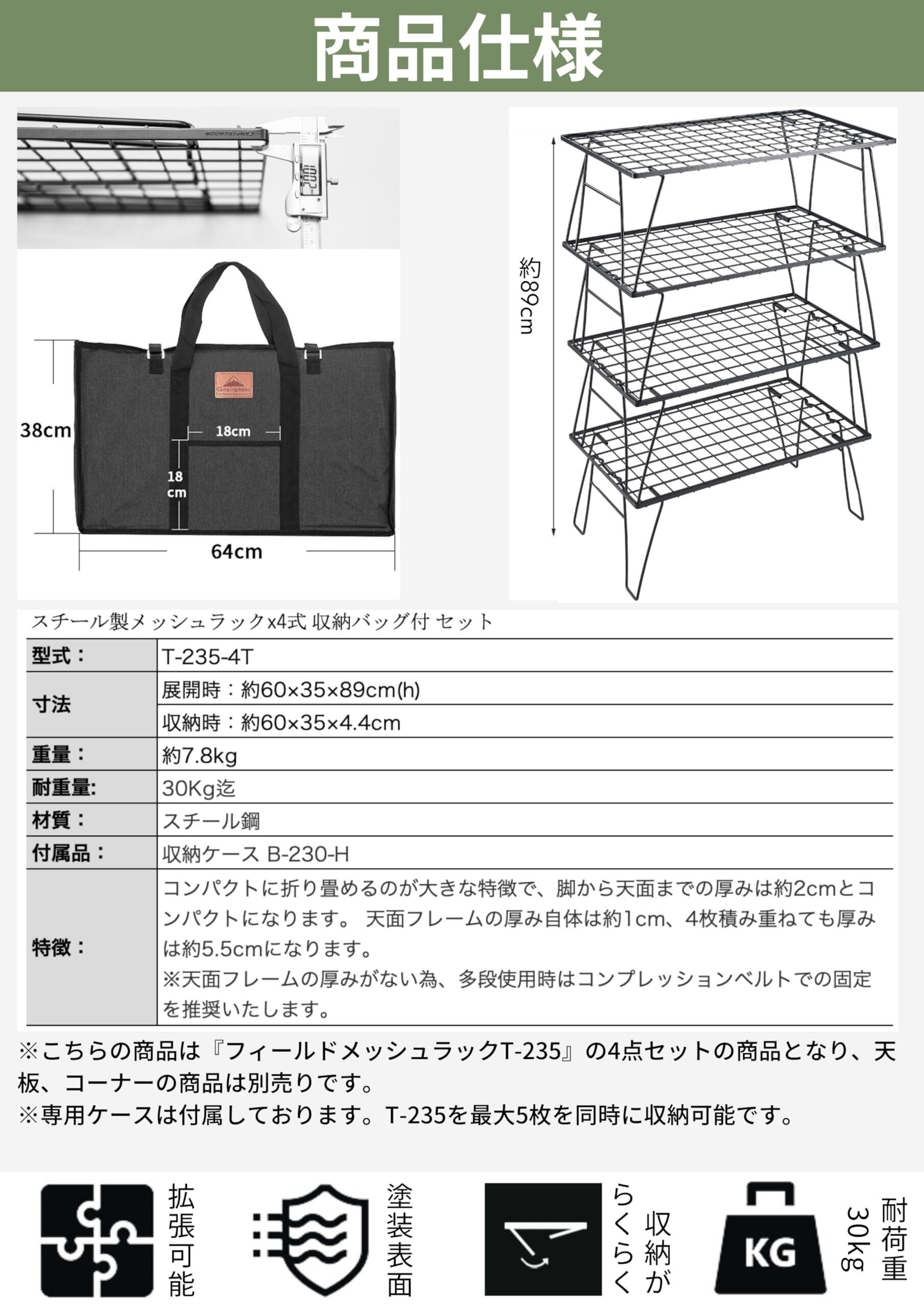 商品内容:フィールドメッシュラック4点セット、収納ケース