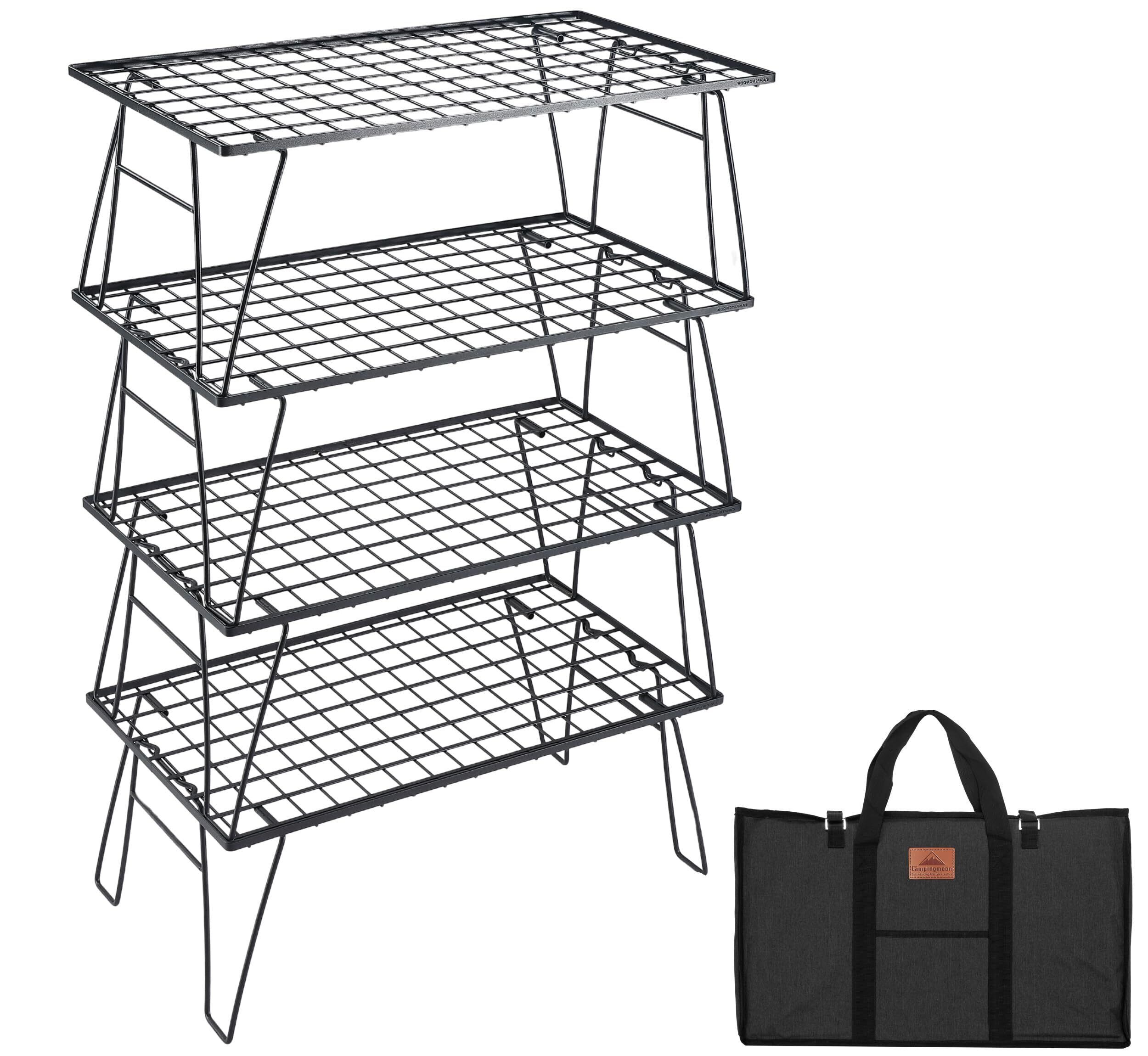 キャンピングムーン(CAMPING MOON) フィールドメッシュラック キャンプ ラック ブラック 軽量 薄型 4点 収納付き T-235-4T