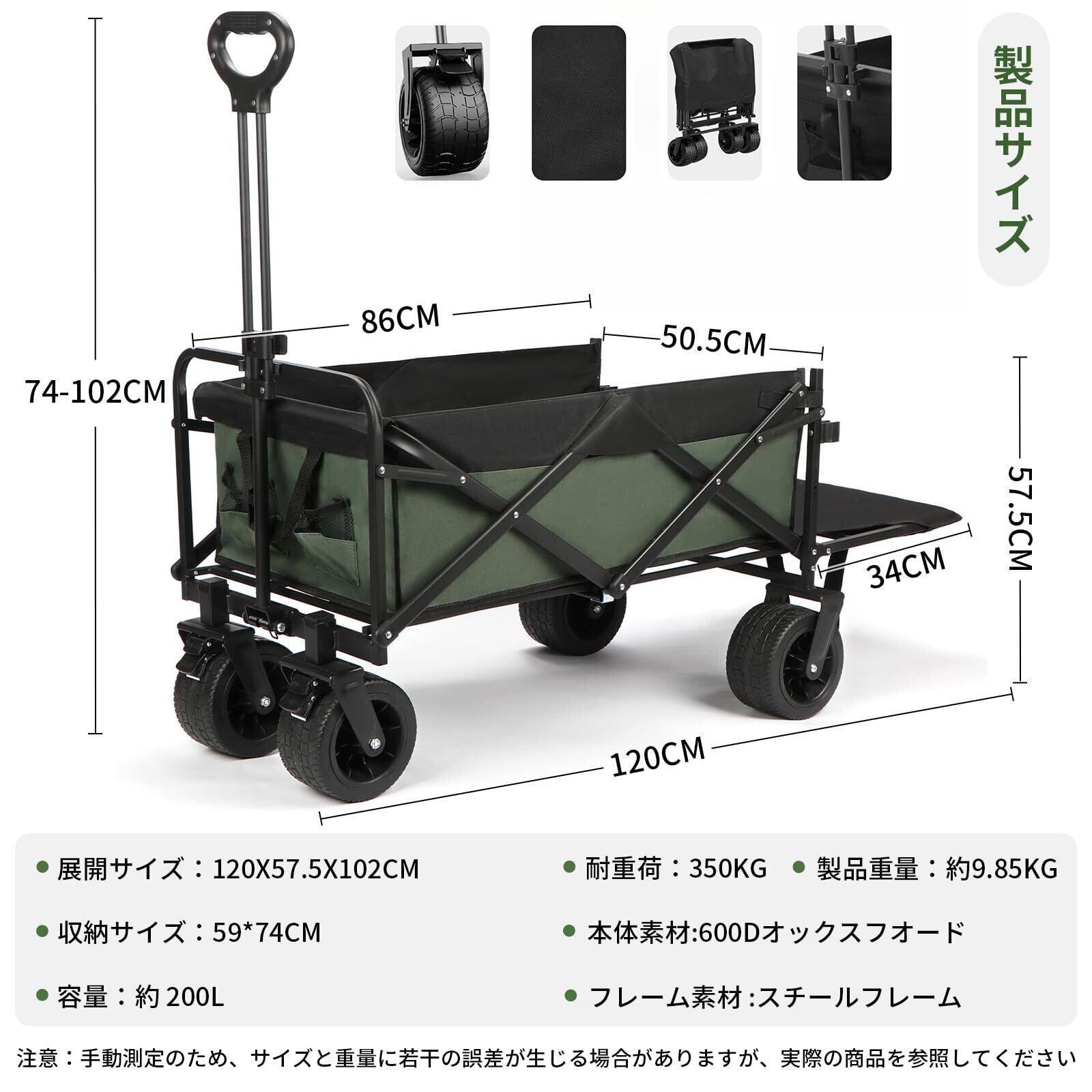 【特価商品】Lasola キャリーワゴン【2025強化版 大容量200L 耐荷重350KG 後部展開可】アウトドアワゴン キャリーカート キャンプカート 長物対応 取り外し可能タイヤ 大型タイヤ ブレーキ付き 折りたたみ ワンタッチ収束式 キャンプ 台車 キャンプ用品 荷物運び 軽量 大型 おしゃれ キャンプ・レジャー・釣り・ビーチ・運動会 (グリーン) (グリーン)