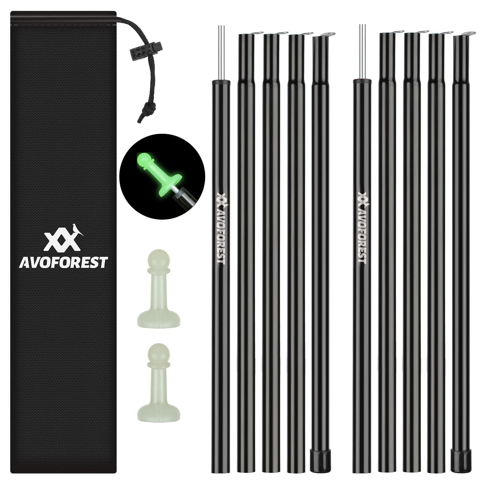 タープポール AVOFOREST スチール製 テントポール 直径16MM 総長189CM 2本セット 5本連結 コンパクト収納 持ち運び便利 収納バッグ付き テント タープ アウトドア キャンプ用品
