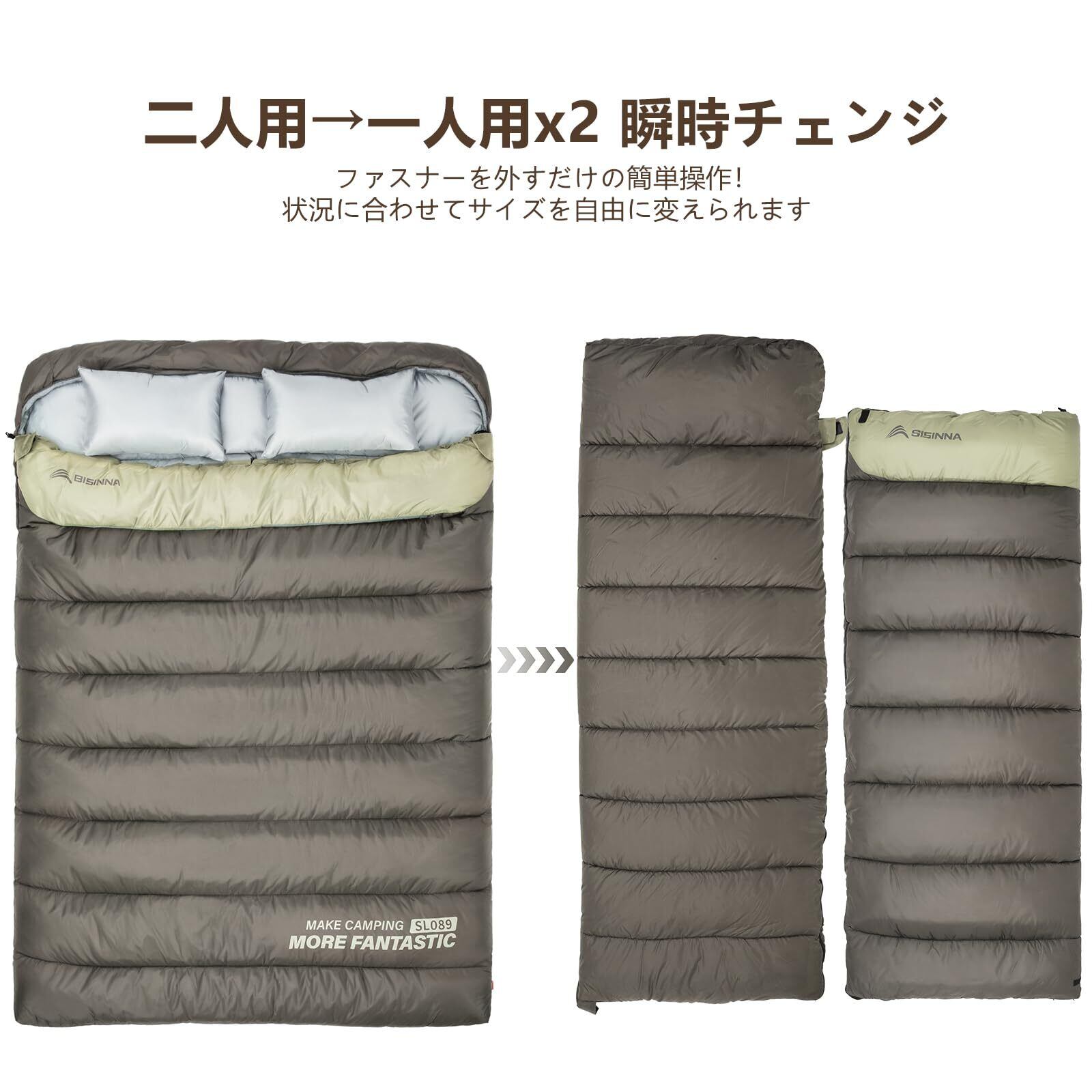 BISINNA キャンプ寝袋 二人用 コンパクト アウトドアシュラフ 封筒型