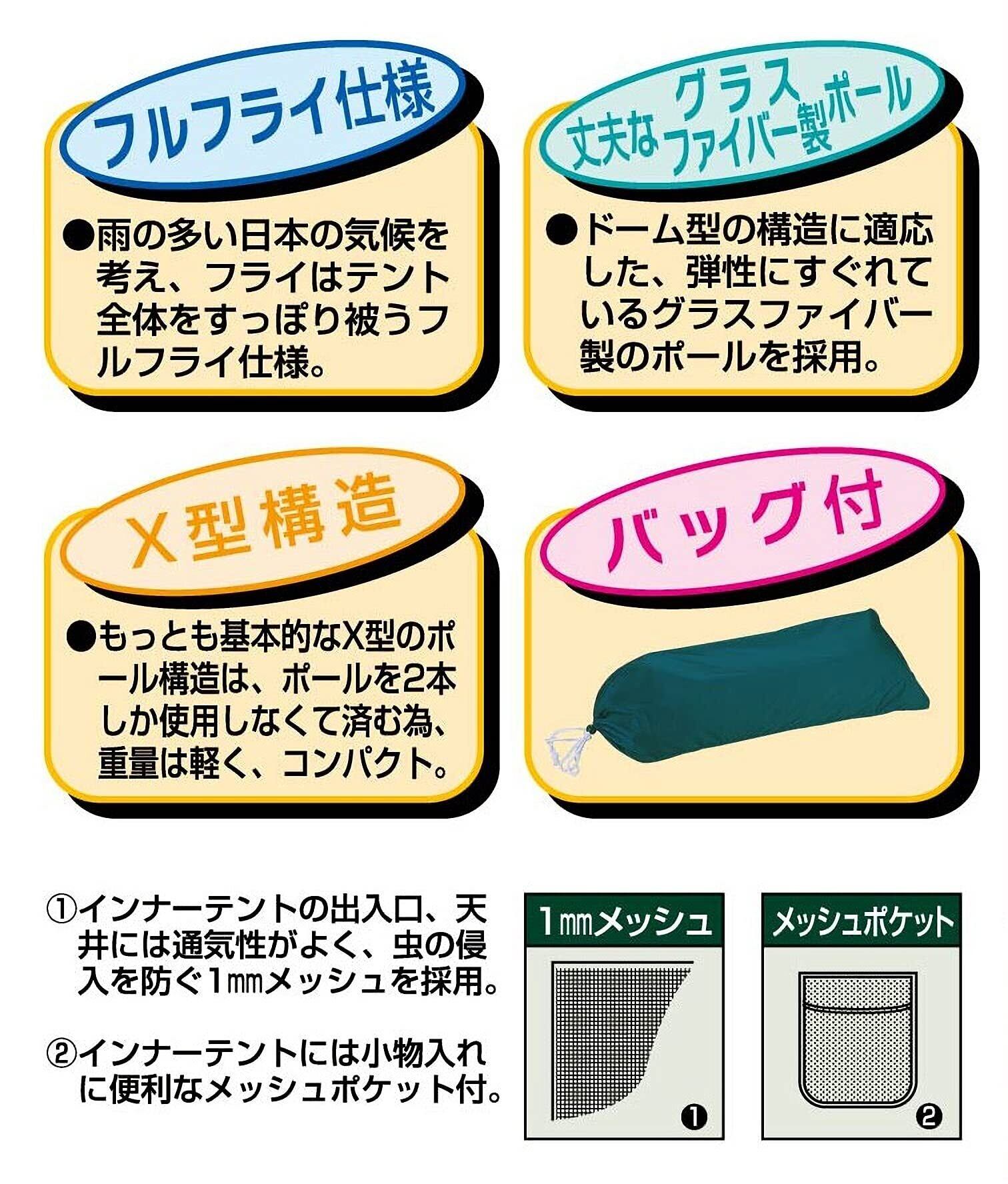 ・付属品:ペグ4本、ポール収納袋1枚、ペグ収納袋1枚、バッグ1枚 ※本製品にハンマーは含まれておりません