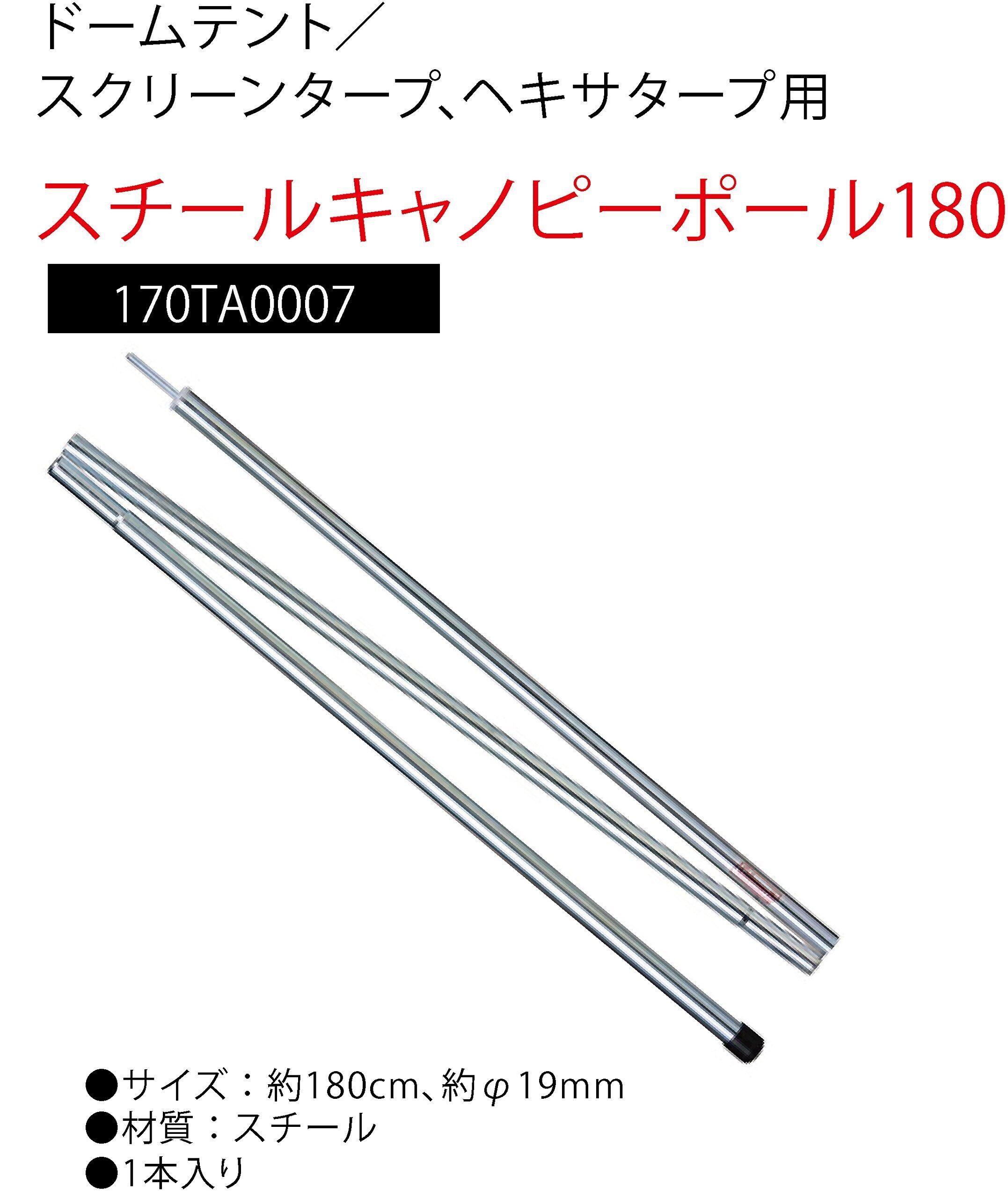 ファミリーテント、スクリーンタープ用のキャノピーポール。テントの日よけ(キャノピー)部分などを支える際に使用する。素材には高強度のスチールを採用。他のポール素材に比べて頑丈な点がいちばんの魅力になっている。
