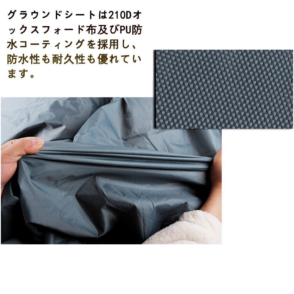 【防水機能】210Tポリエステル生地を採用し、厳格な試験監督を通し、テント・底部防水レベルは3000mm(耐暴風)まで達します。