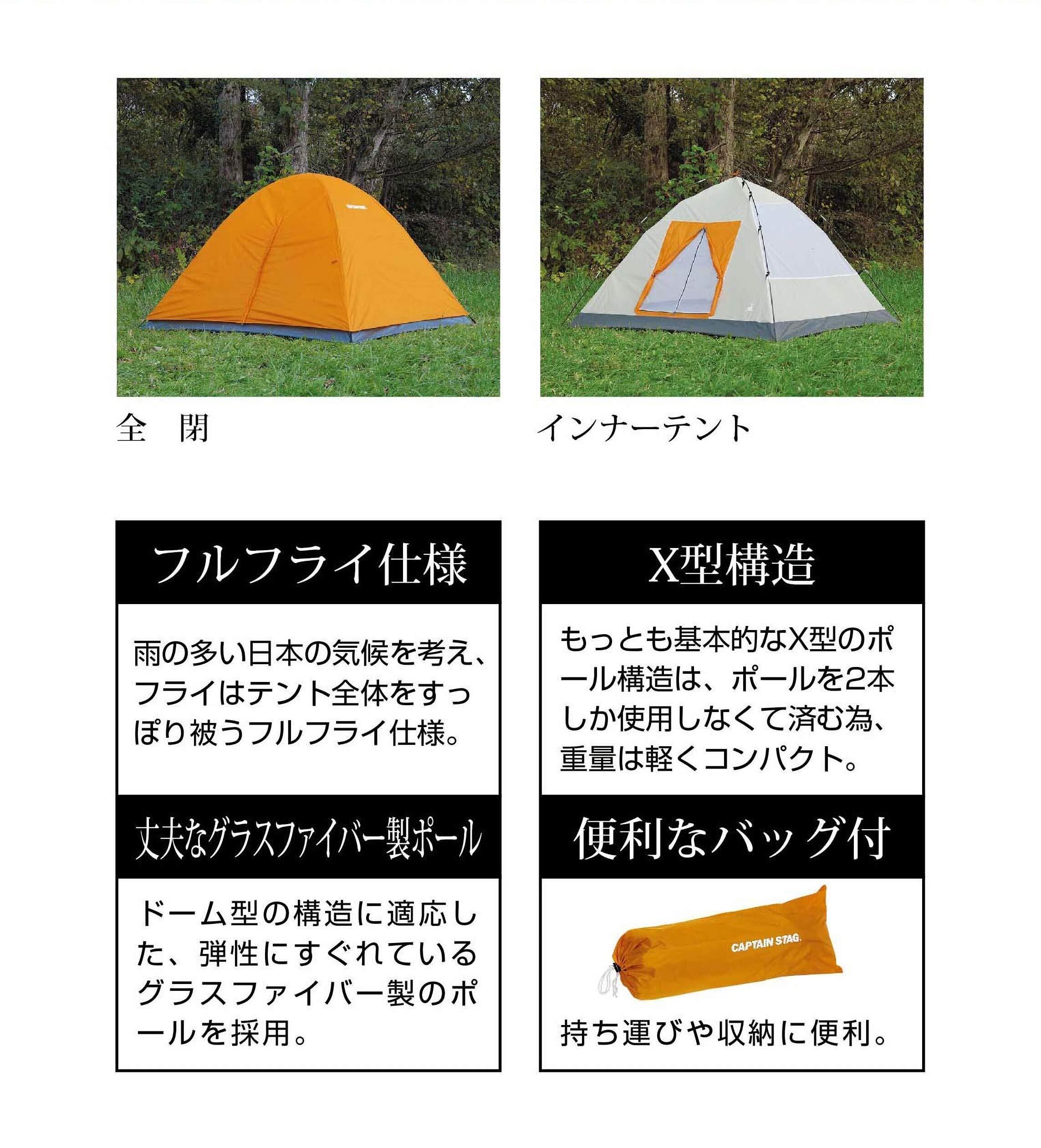 【新着商品】キャプテンスタッグ(CAPTAIN STAG) テント クレセント ドームテント ドーム型 【3人用】 防水 軽量 コンパクト設計 収納バッグ・ペグ4本付き グラスファイバー製ポール採用 | paghag