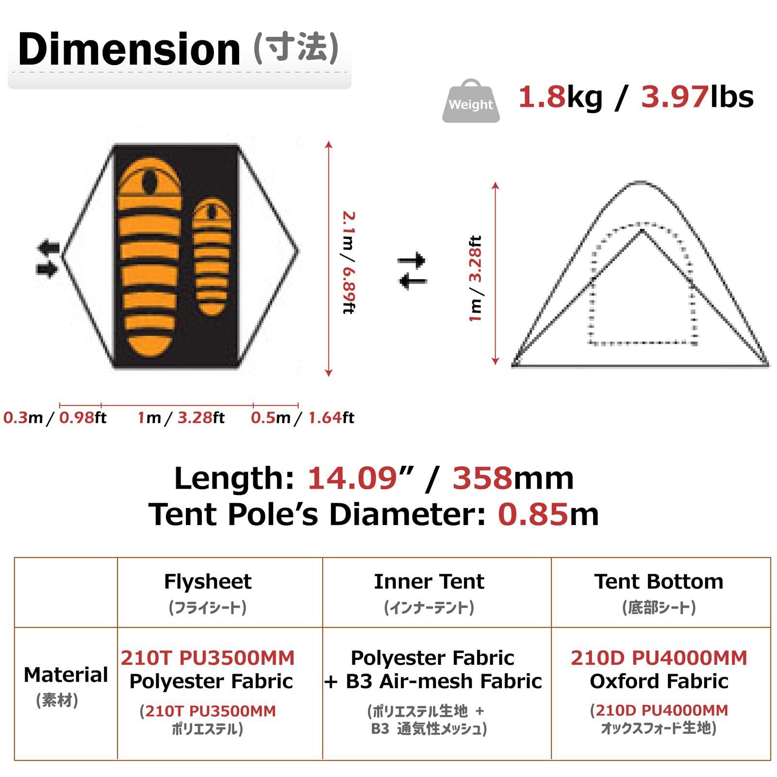 【素材】- テント本体:ポリエステル、オックスフォード布、メッシュ/ポール:アルミニウム