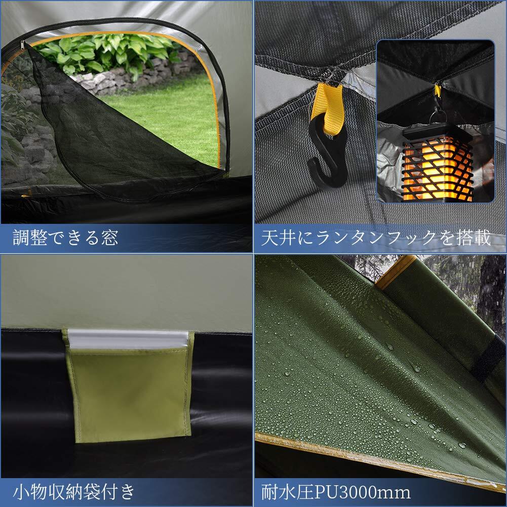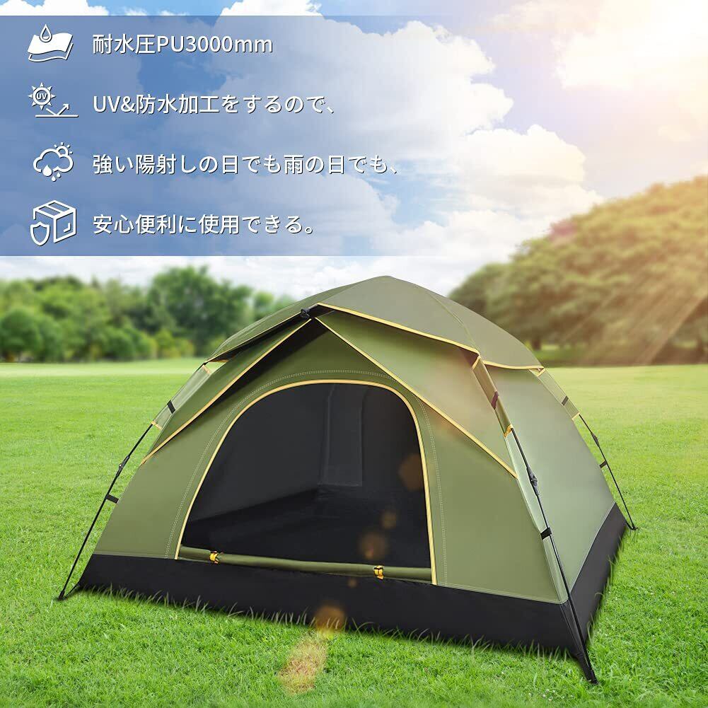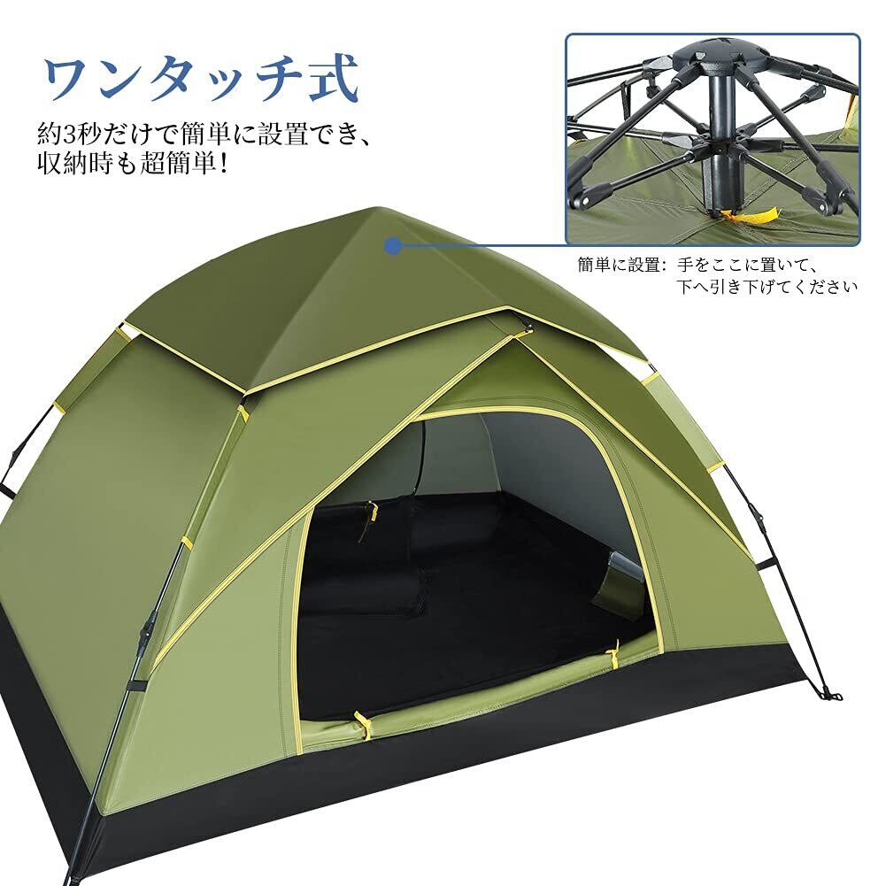 【数量限定】GEEDIARテント ワンタッチテント キャンプテント3~4人用 設営簡単 uvカット加工 防風防水 折りたたみ 超軽量 防災用 キャンプ用品 アウトドア 花見 海水浴 登山 (アーミーグリーン)