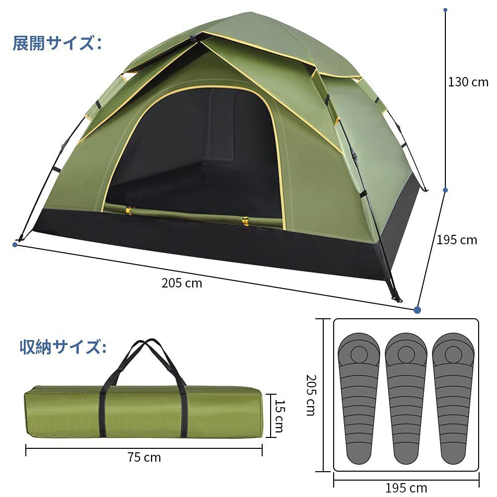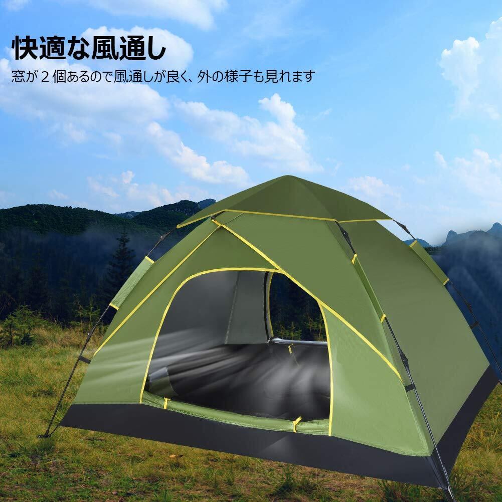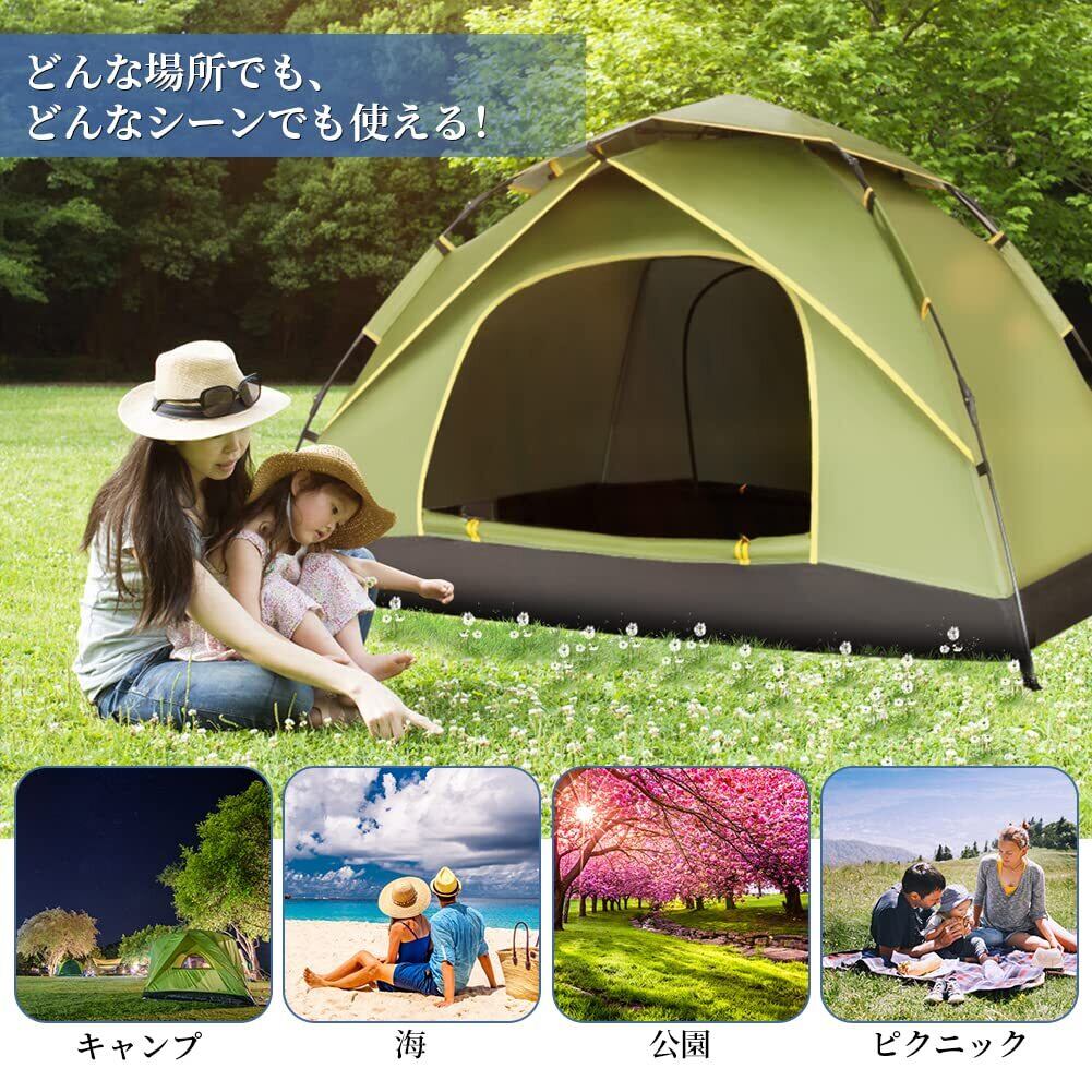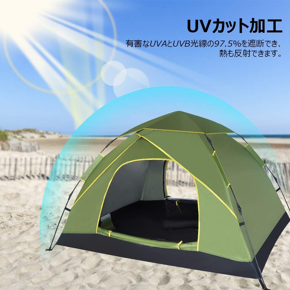 GEEDIARテント ワンタッチテント キャンプテント3~4人用 設営簡単 uvカット加工 防風防水 折りたたみ 超軽量 防災用 キャンプ用品 アウトドア 花見 海水浴 登山 (アーミーグリーン)