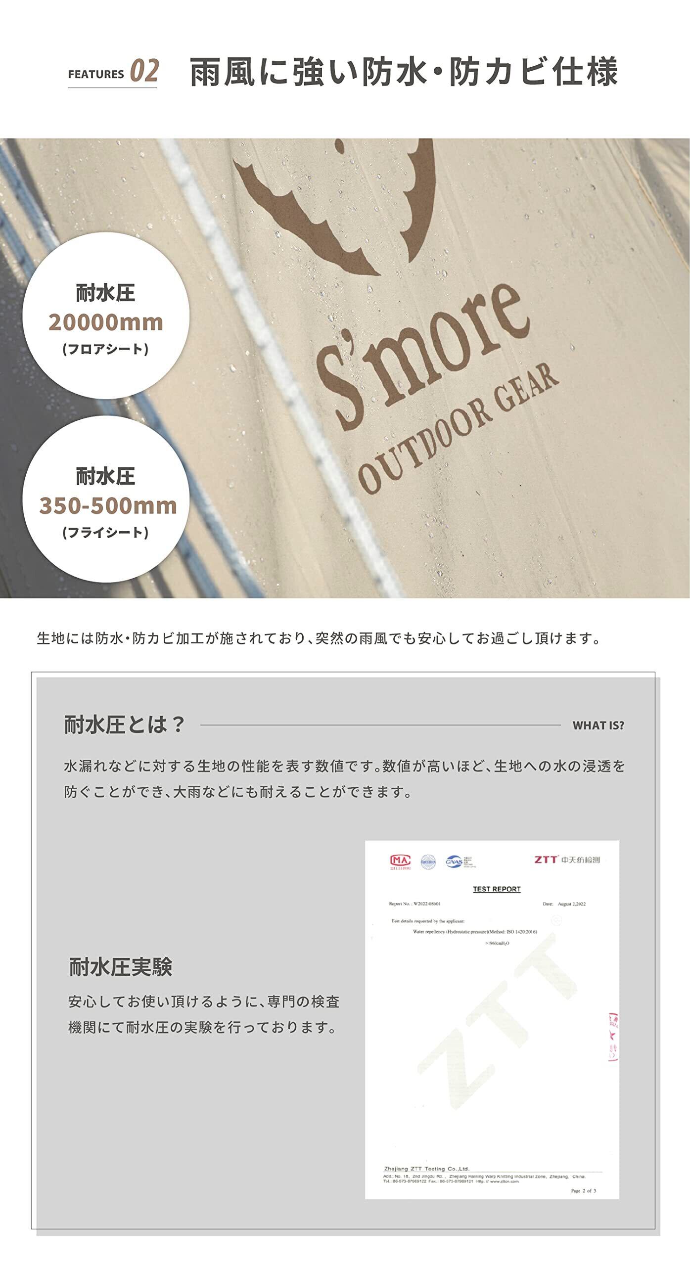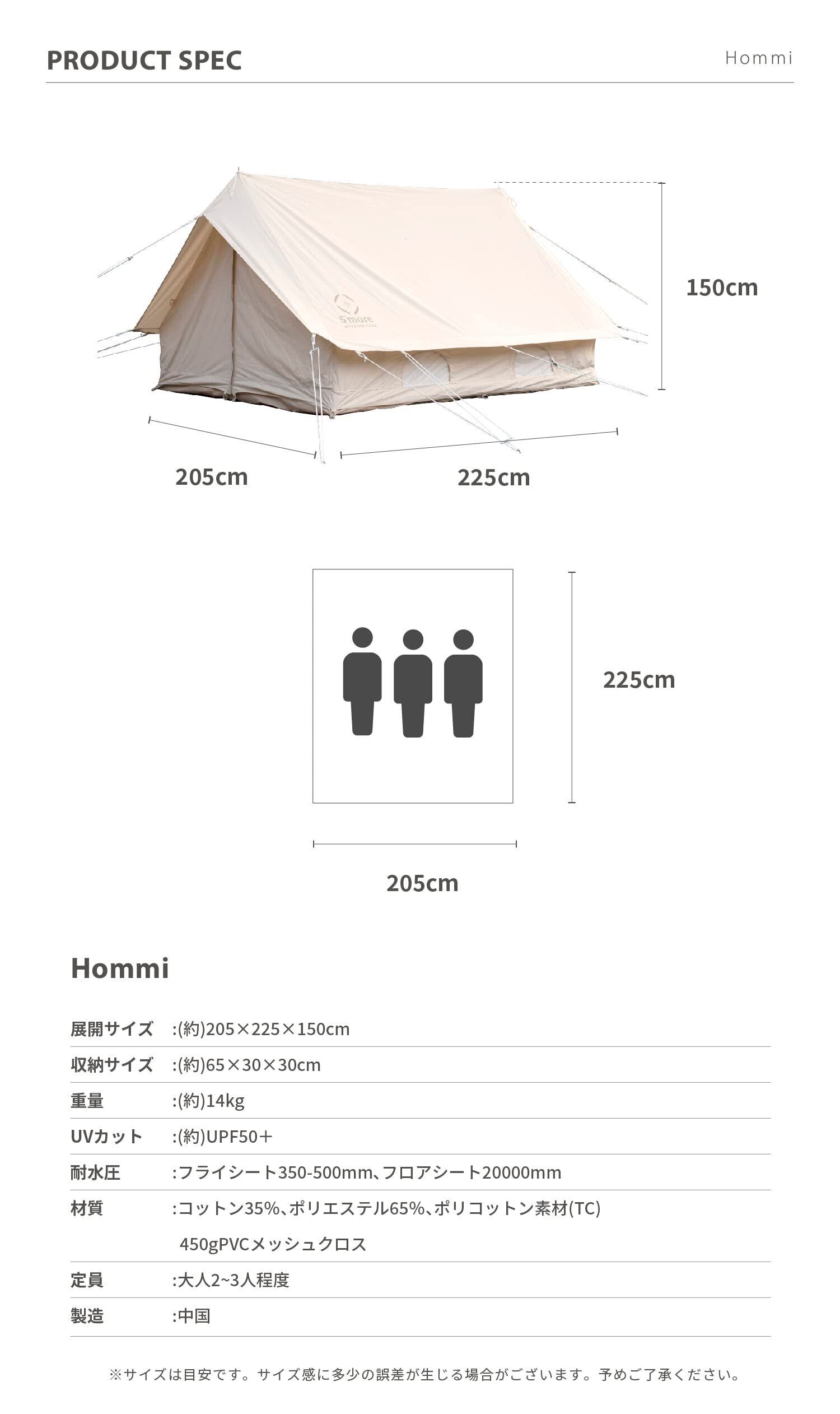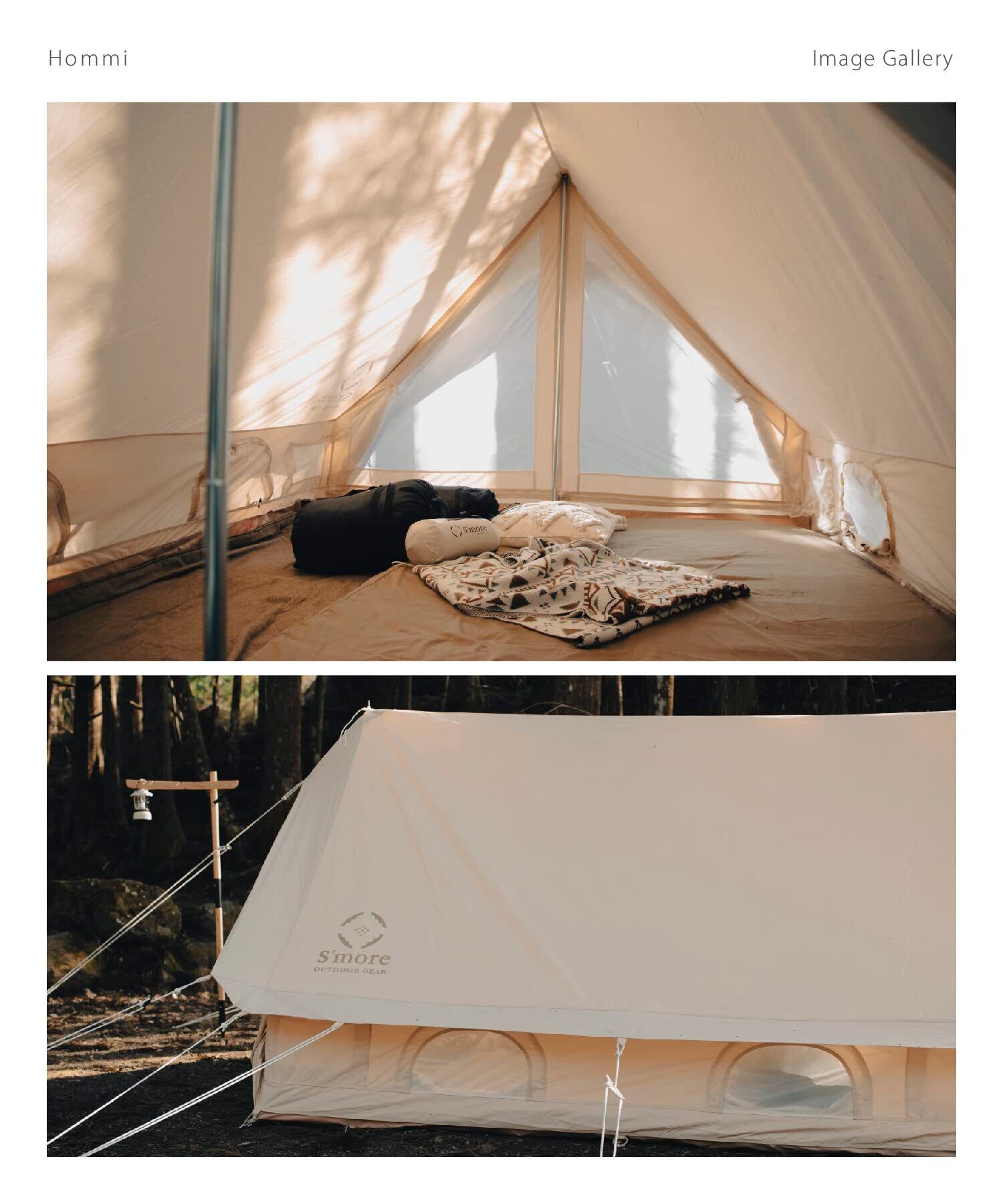 S'more (スモア) Hommi テント ポリコットン 小屋型 家型 収納バッグ付き ファミリーテント 2~3人用 260*210cm キャンプ テント おしゃれ 撥水加工通気性 吸湿性 撥水 難燃 UPF50+ 抗菌 UVカット アウトドア 日除け バーベキュー