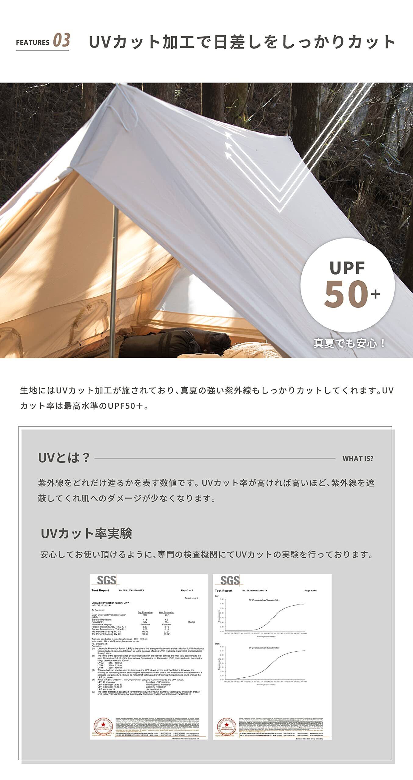 【高品質ポリコットン生地】コットン35%、ポリエステル65%、ポリコットン素材(TC)の生地、肌触りはきめ細かく滑らかで、UVカット、耐水性、防カビ、難燃性もあります。コーティングをしていませんので、結露の心配はありません。