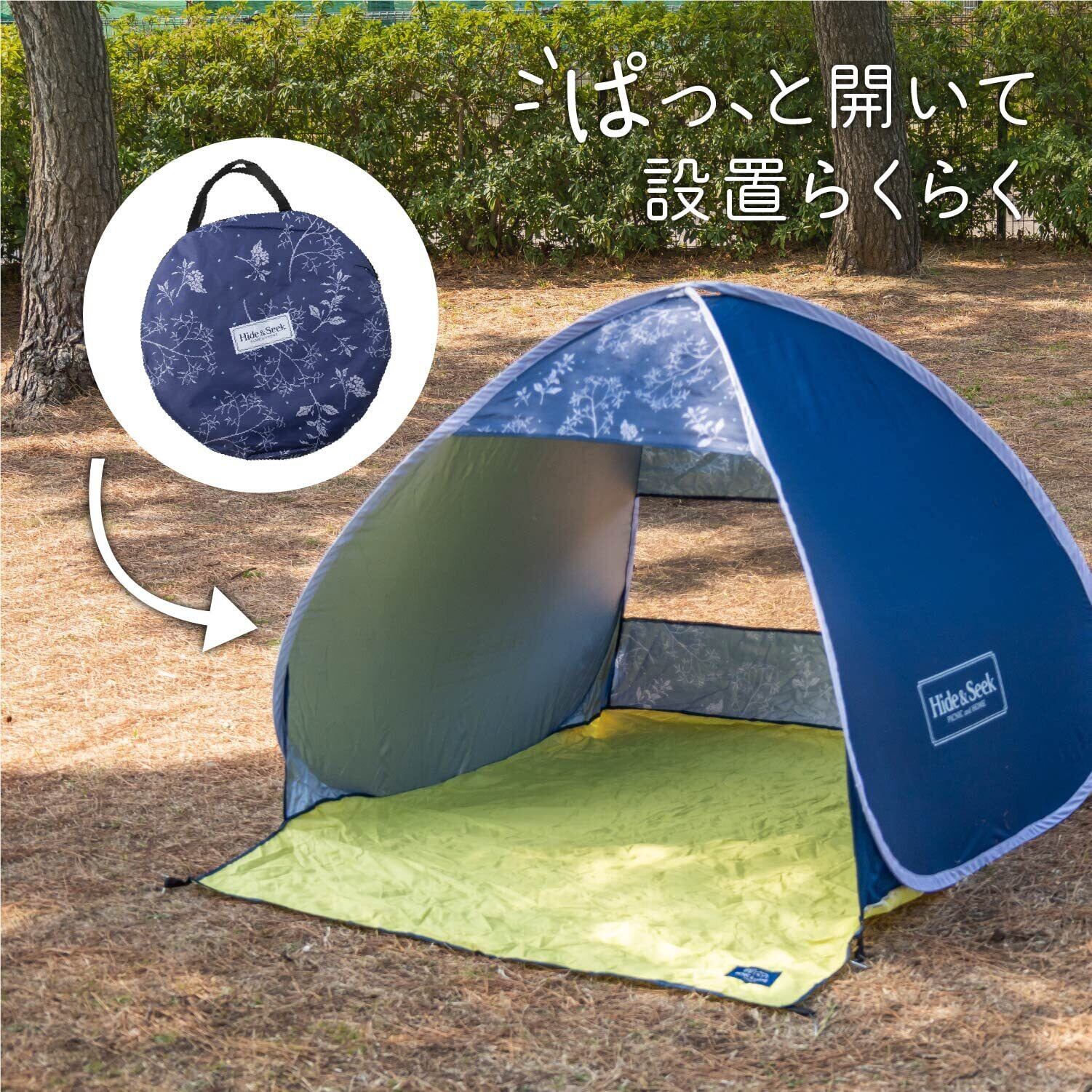 ワンタッチで、ぱっと開いて設置らくらくポップアップ式テント