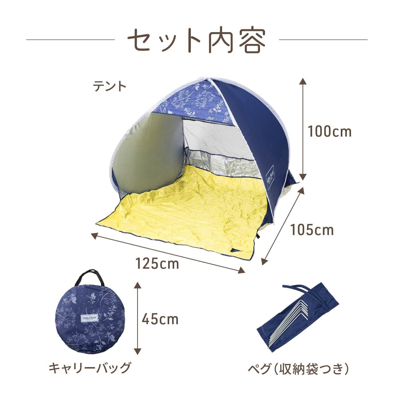 各サイズ:テント/幅125×奥行105×高さ100cm(1~2人用)、キャリーバッグ/直径45cm