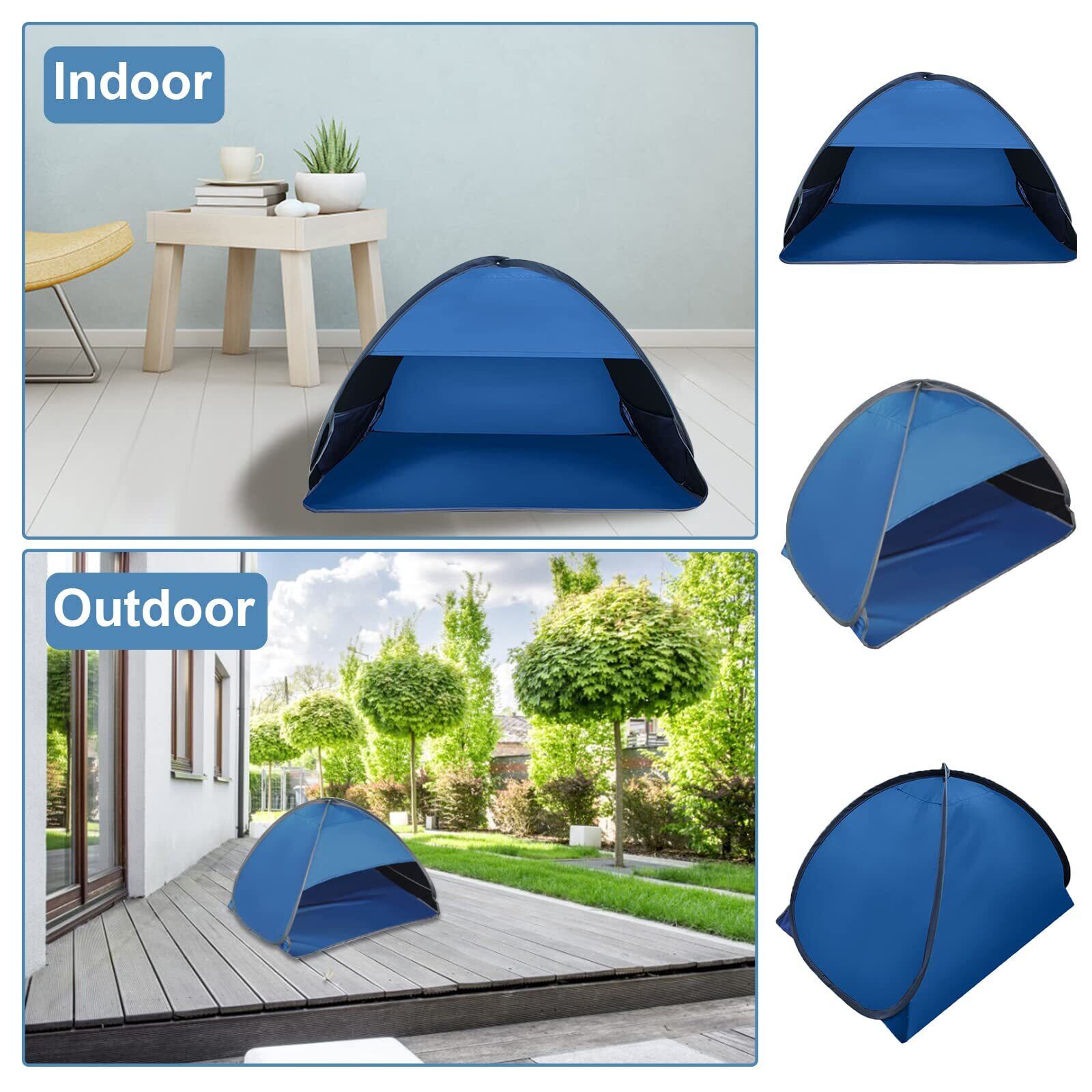 HACRAHO ポップアップビーチサンテント, 1パック アンチUV用の折りたたみ式ポップアップビーチテントサンシェルター ミニヘッドテント アウトドアキャンプピクニックビーチ用, ブラックグルーブルーM