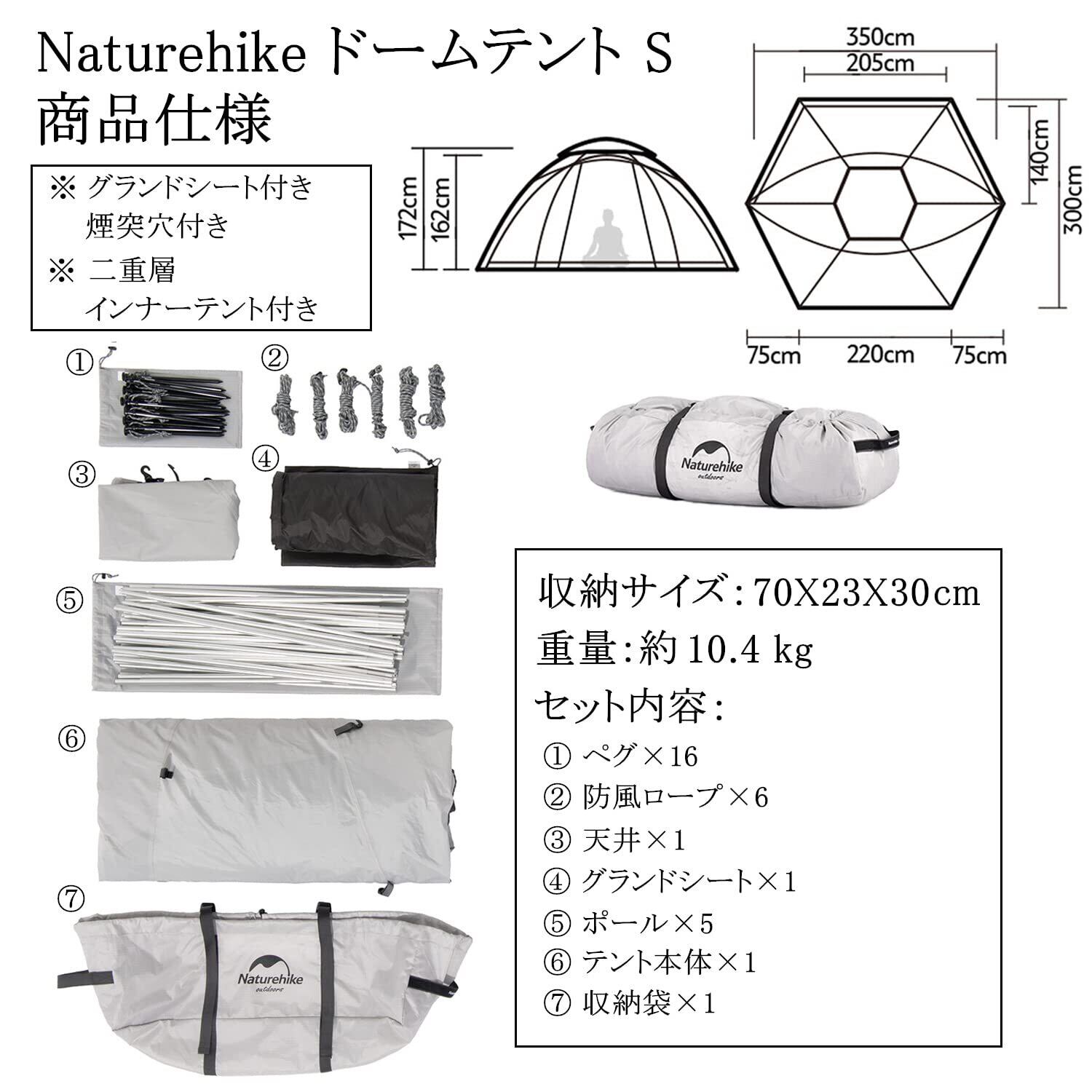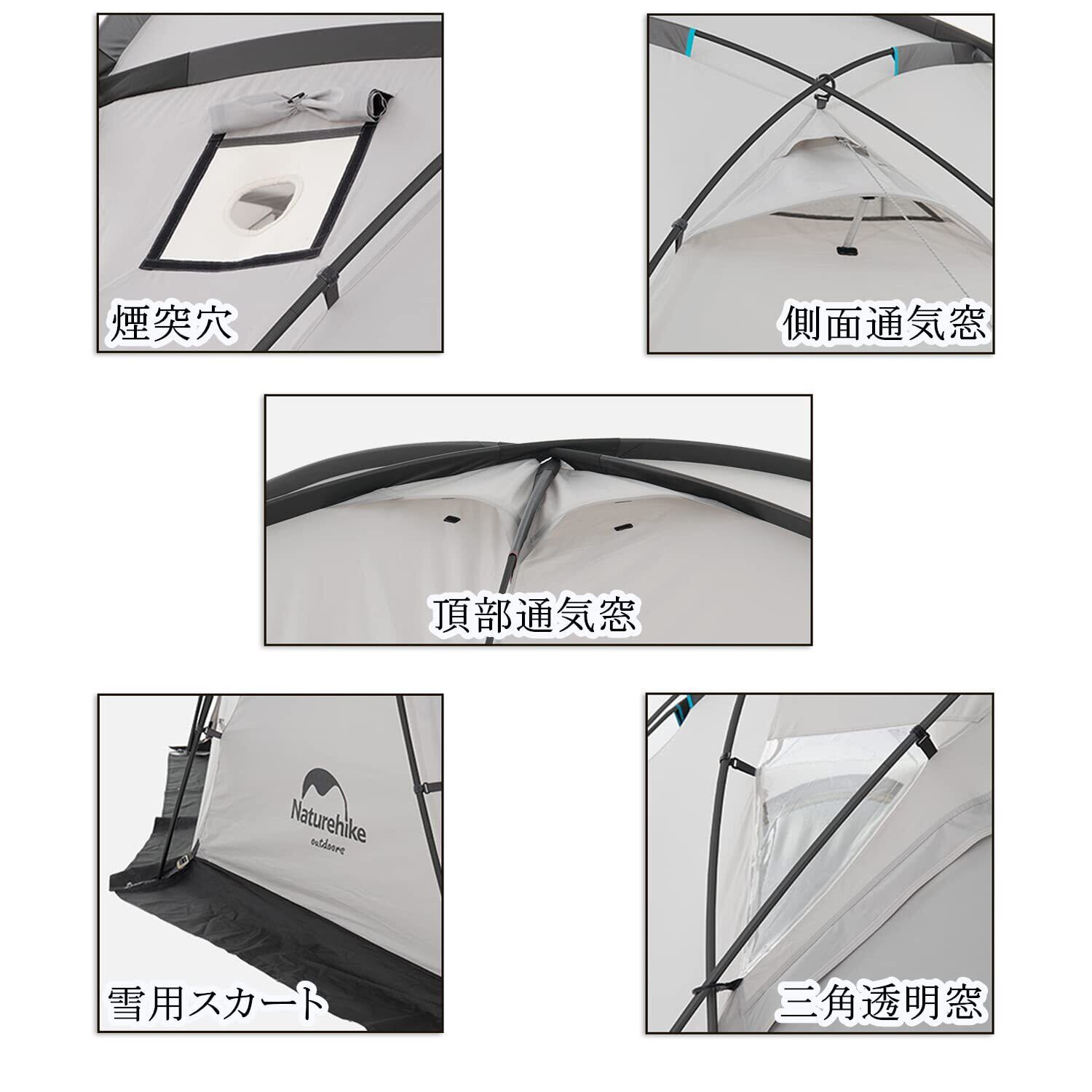 Naturehike ドームテント 測地線構造 登山 雪用スカート 大型 アウトドア キャンプ 雪山 ハイキング キャンピング ビーチ 防雨 耐水圧PU3000mm 防風 防災 自立式 4シーズン 煙突穴付き【専用グランドシート付】