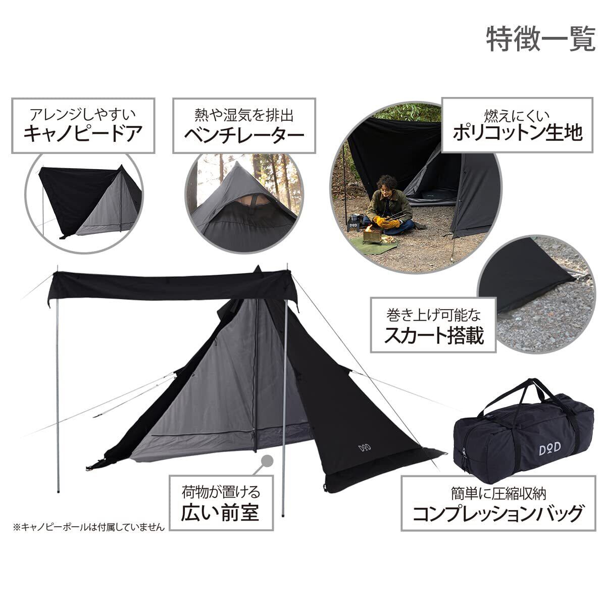 DOD(ディーオーディー) ムシャテント 1人用 火の粉に強い TC 素材の ソロテント T1-819-TN/BK/KH