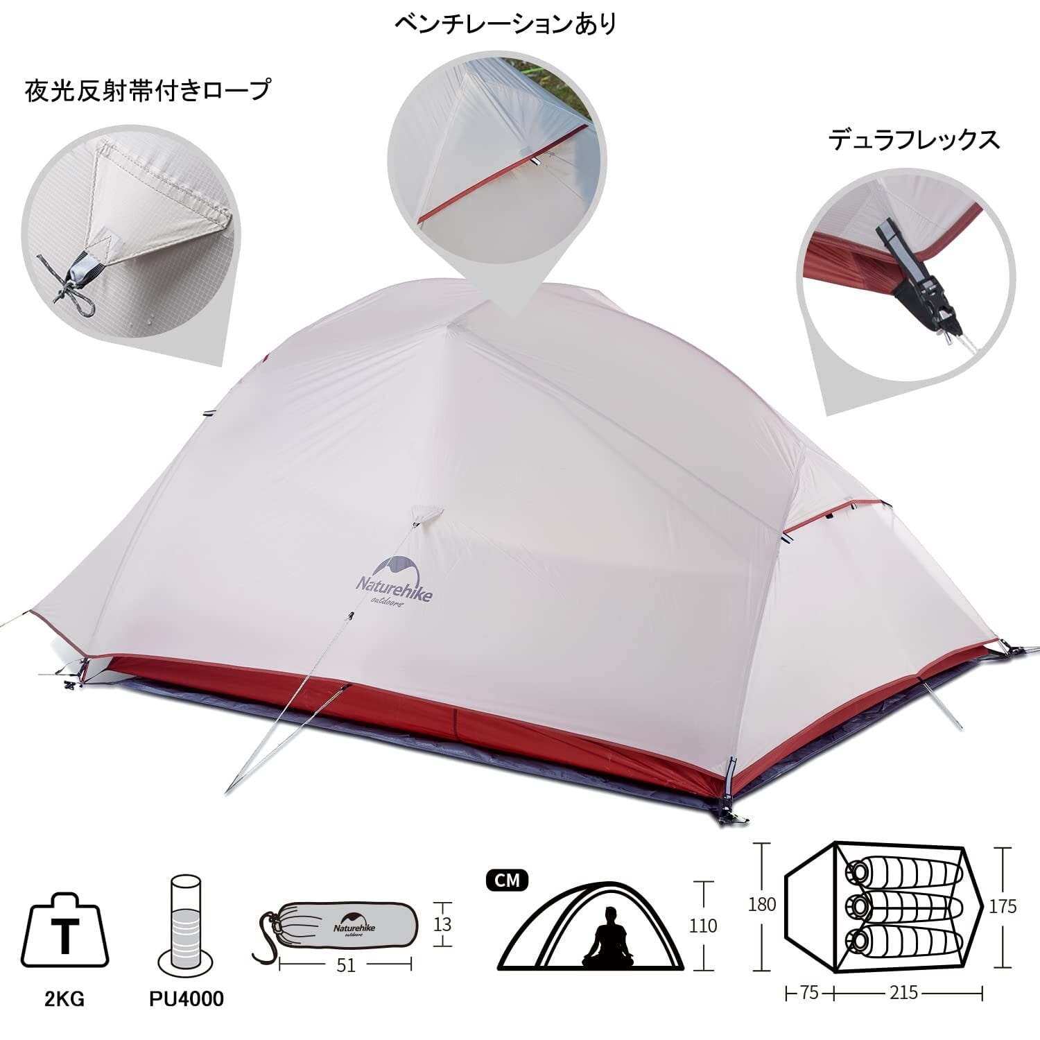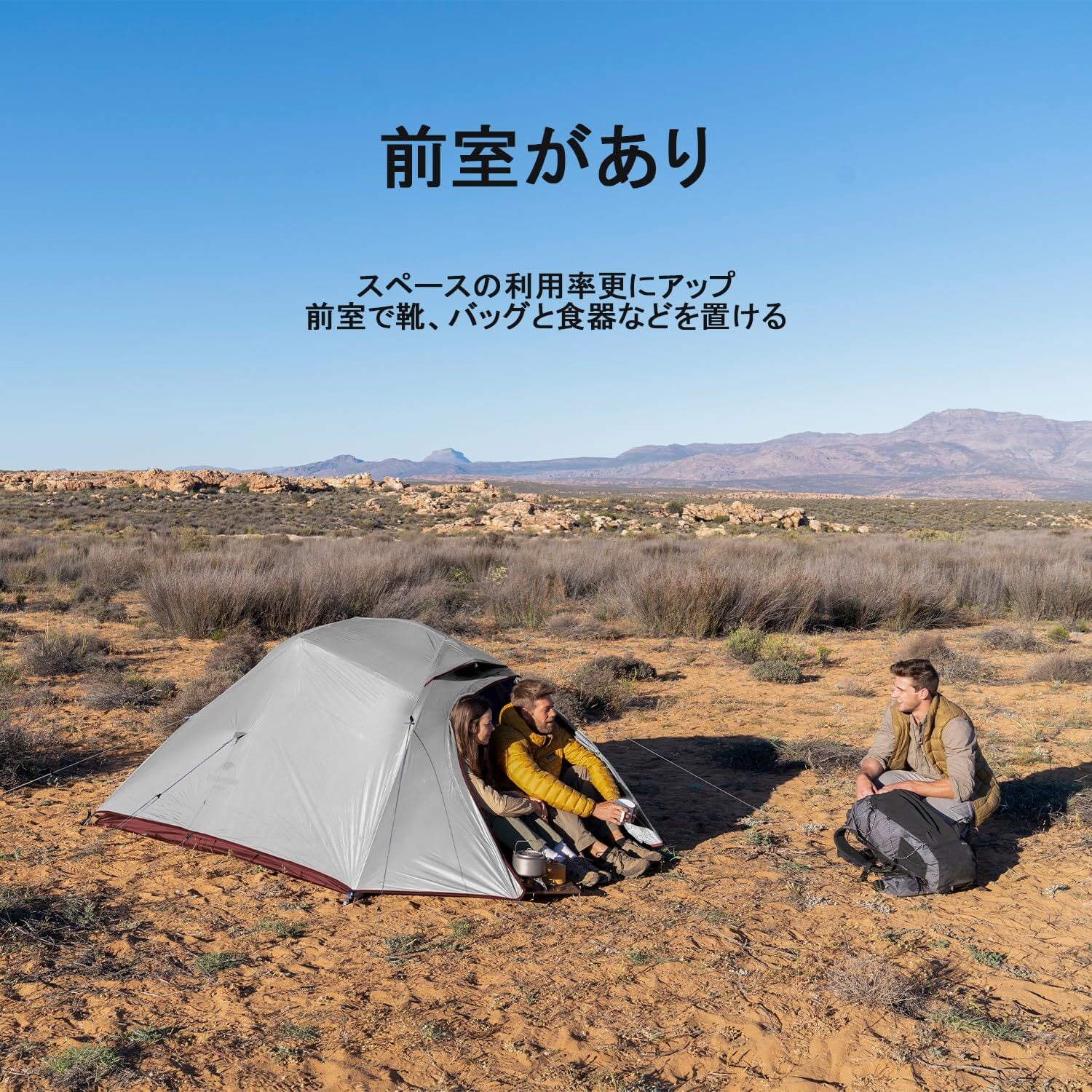 Naturehike公式ショップ テント 3人用 Cloudup3 超軽量 ダブルウォール 防風防水 通気性 4シーズン アウトドア 持ち運びやすい キャンピング キャンプ アウトドア 防災用(専用グランドシート付) (20Dグレーアップグレード版)