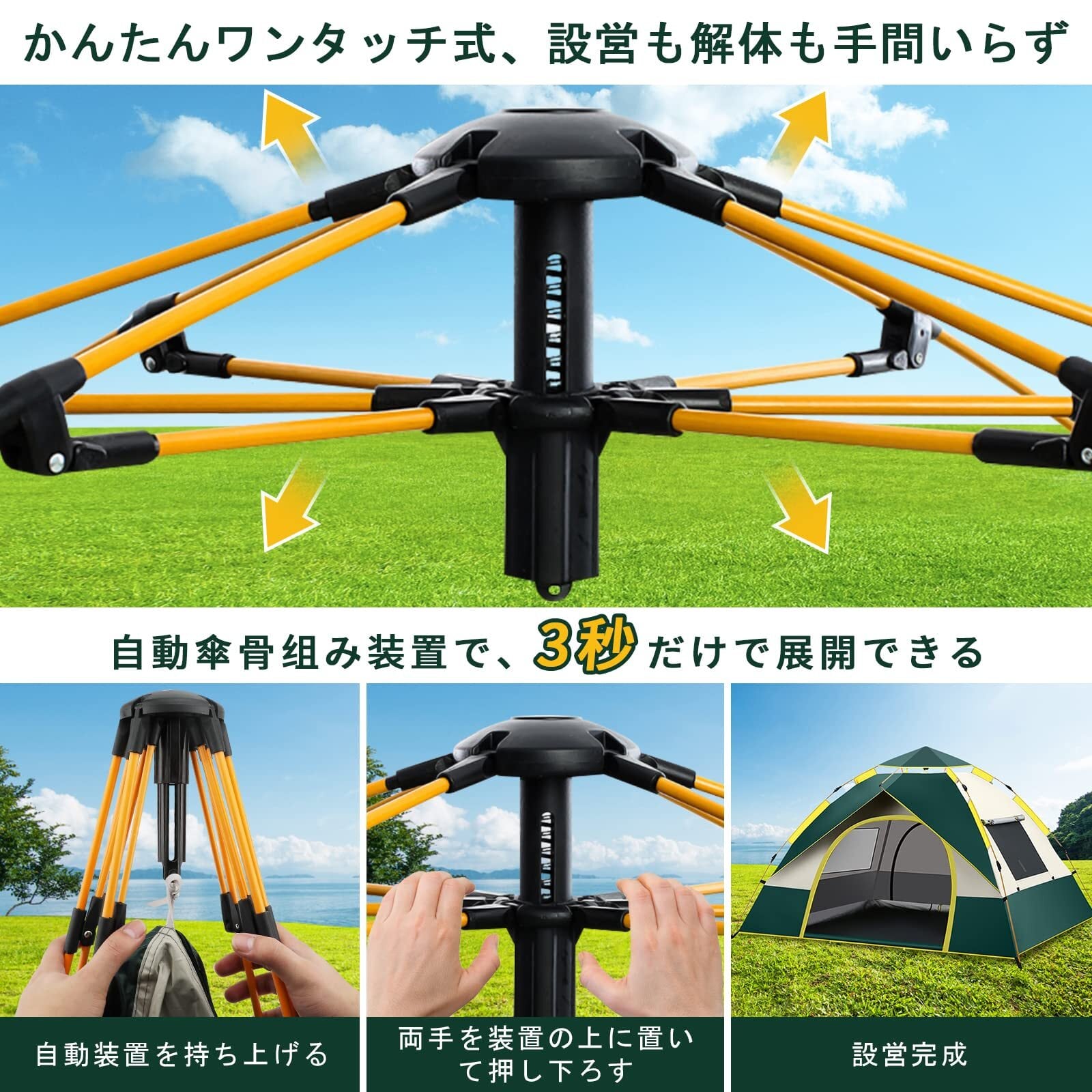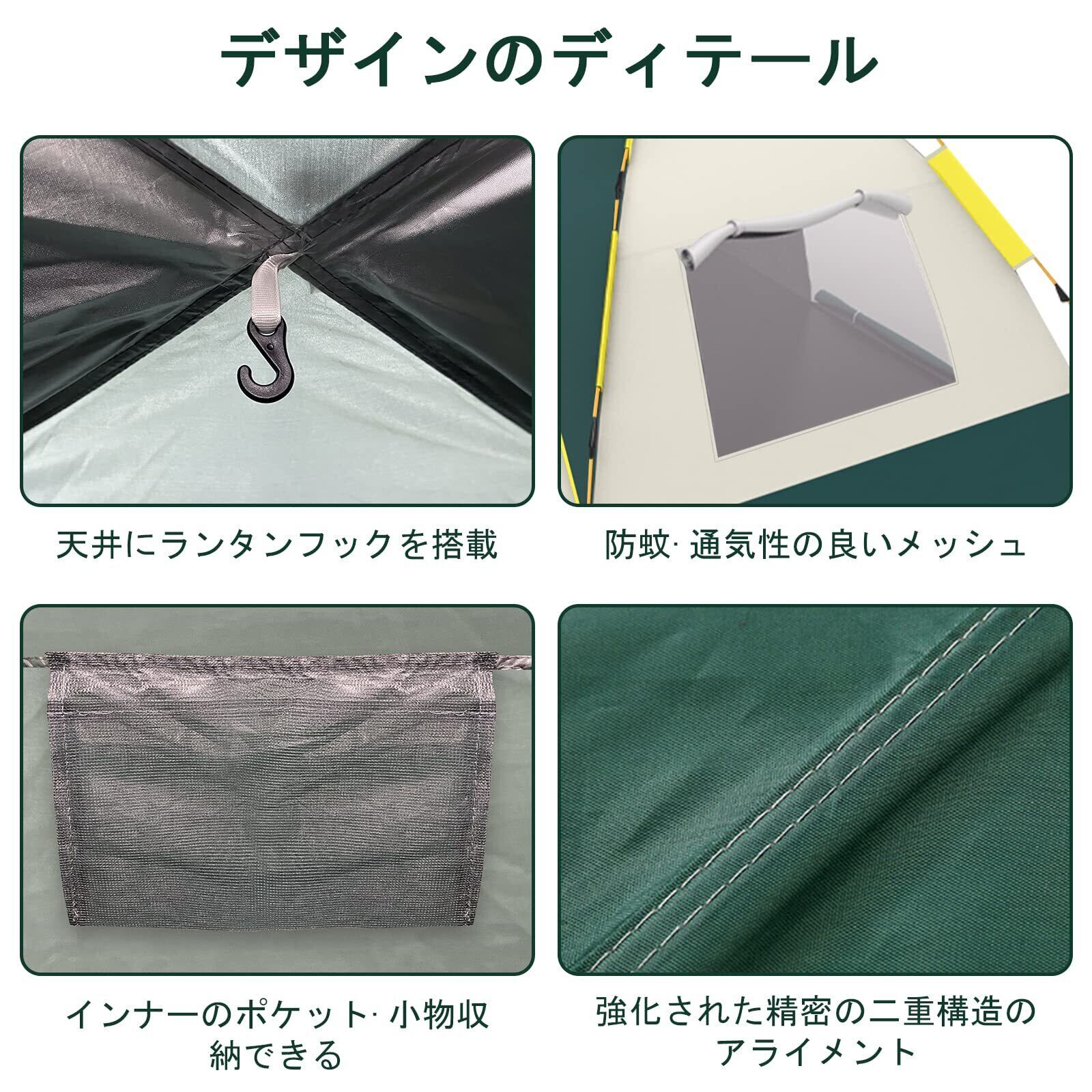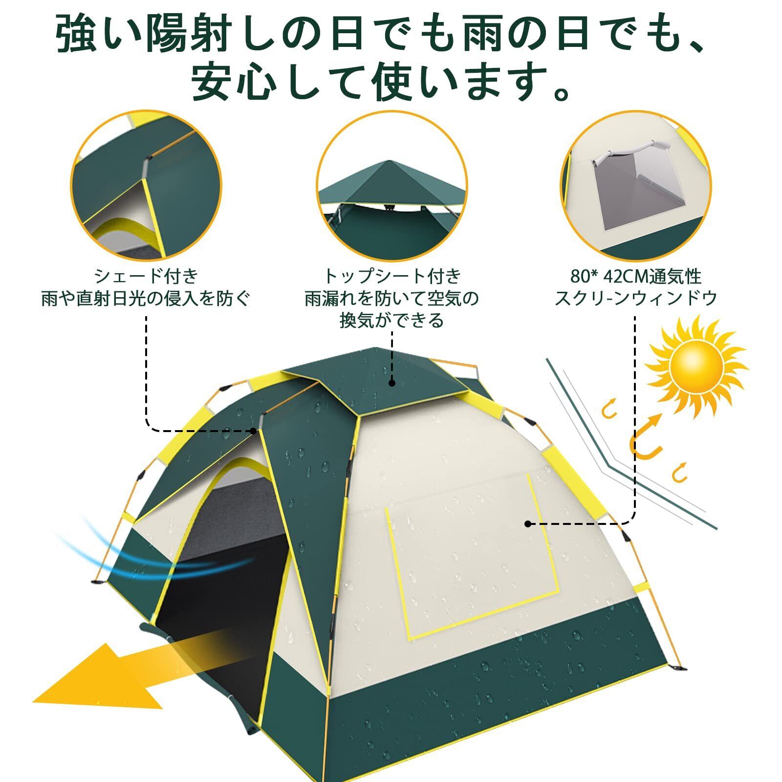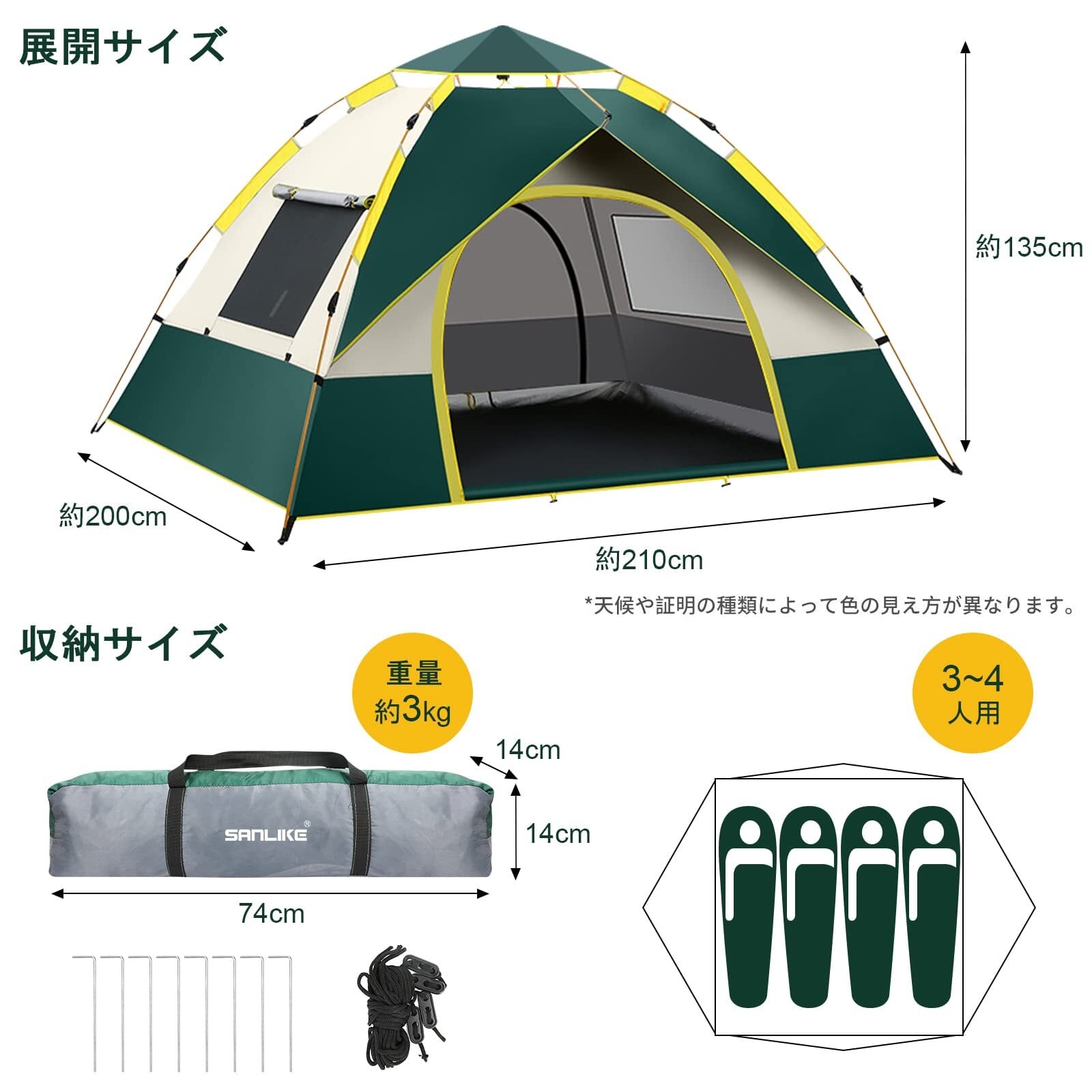 【新着商品】サンライク(SANLIKE) ワンタッチテント 簡易テント 2~4人用 軽量&コンパクト 通気 防風 防水 防虫 uvカット 耐水圧3000mm テント 設営簡単 アウトドア キャンプ用品 登山 海水浴場用 防災用 専用収納袋付属 (M-グリーン-2つ側窓付き)