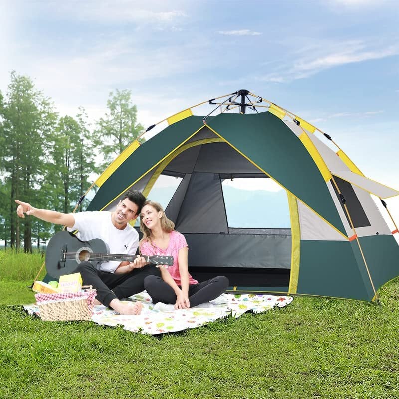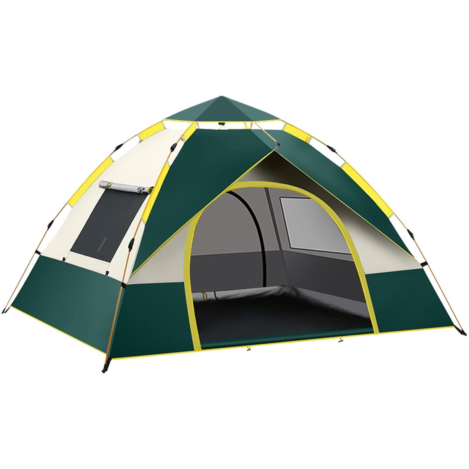 サンライク(SANLIKE) ワンタッチテント 簡易テント 2~4人用 軽量&コンパクト 通気 防風 防水 防虫 uvカット 耐水圧3000mm テント 設営簡単 アウトドア キャンプ用品 登山 海水浴場用 防災用 専用収納袋付属 (M-グリーン-2つ側窓付き)