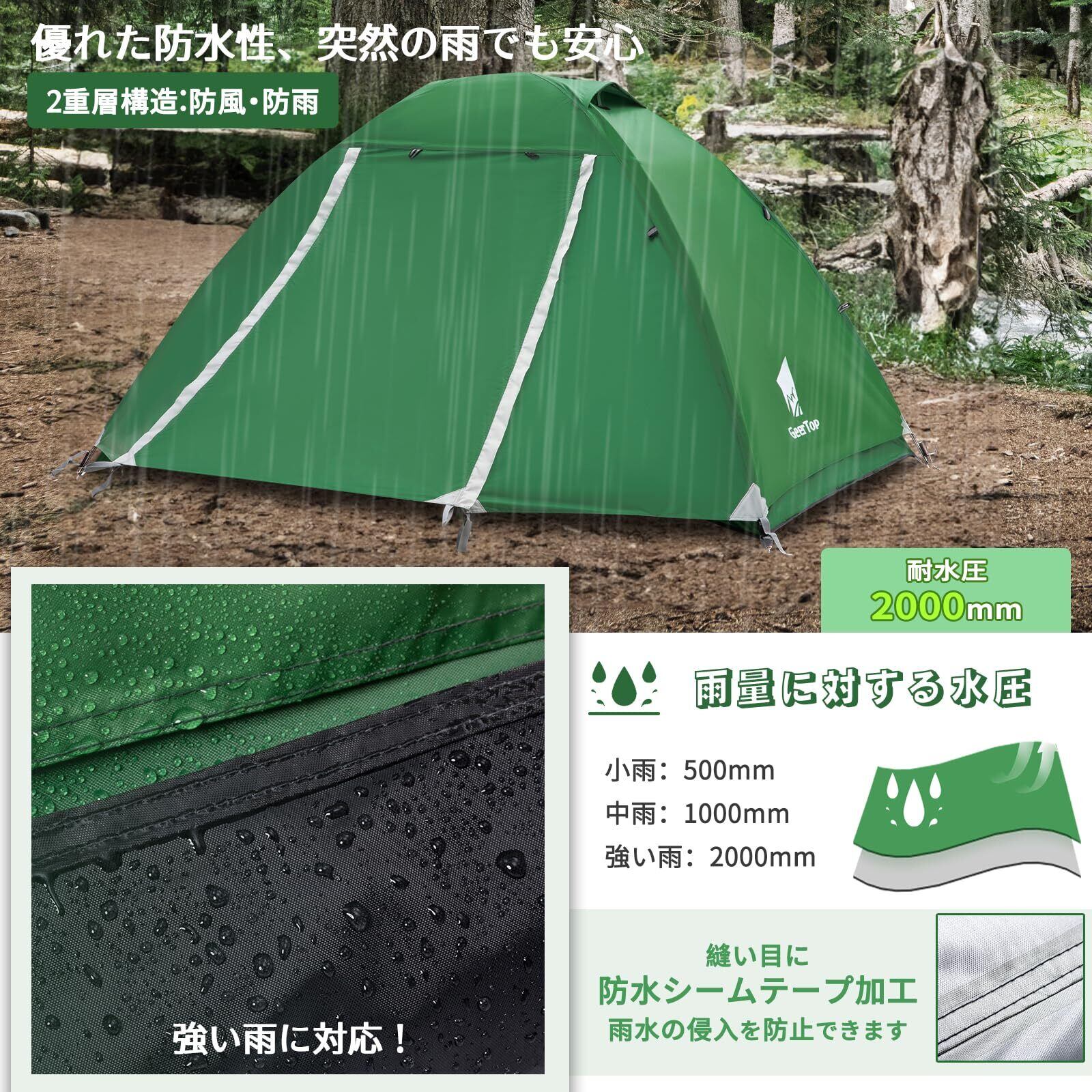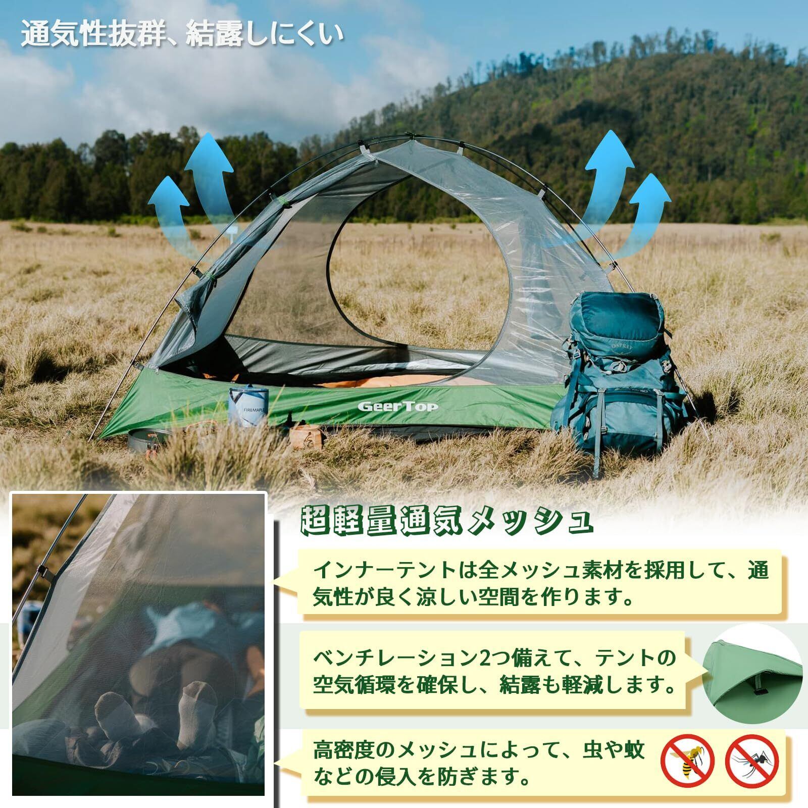 Geer Top テント 2人用 ソロキャンプ テント 前室付き 軽量 ドームテント 防水 二重層 通気 UVカット コンパクト 簡単設営 アウトドア バイク ツーリング 登山 徒歩