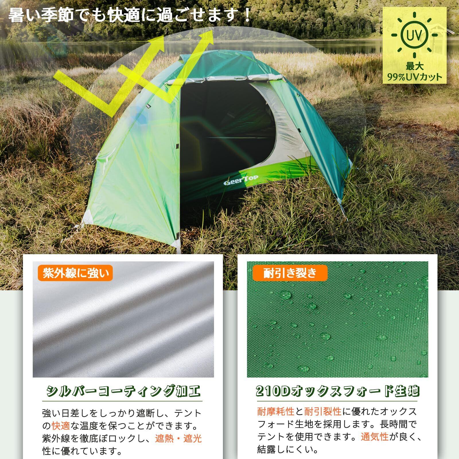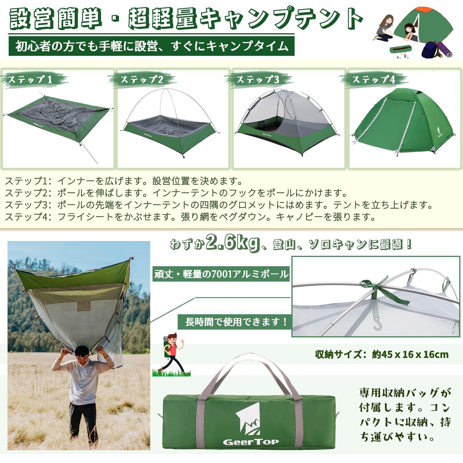 【2022最新】Geer Top テント 2人用 ソロキャンプ テント 前室付き 軽量 ドームテント 防水 二重層 通気 UVカット コンパクト 簡単設営 アウトドア バイク ツーリング 登山 徒歩