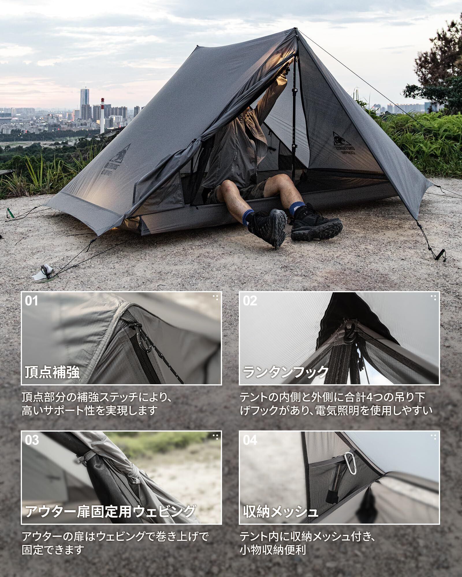 OneTigris Hillridge 軽量テント 登山用テント 2人用 良い通気性 撥水加工 耐水圧3000mm 簡単設営 前室あり 結露対策 アップグレード版 3シーズン 自転車/バイク旅行/ハイキング/キャンプ用