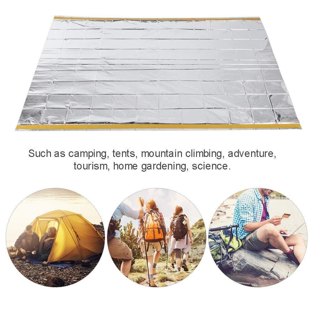 【野外での生存ツール】野外で遭難した場合、体にサーマルブランケットを巻き、その反射効果を活用して救助隊員が目標を見つけるのに役立ちます。