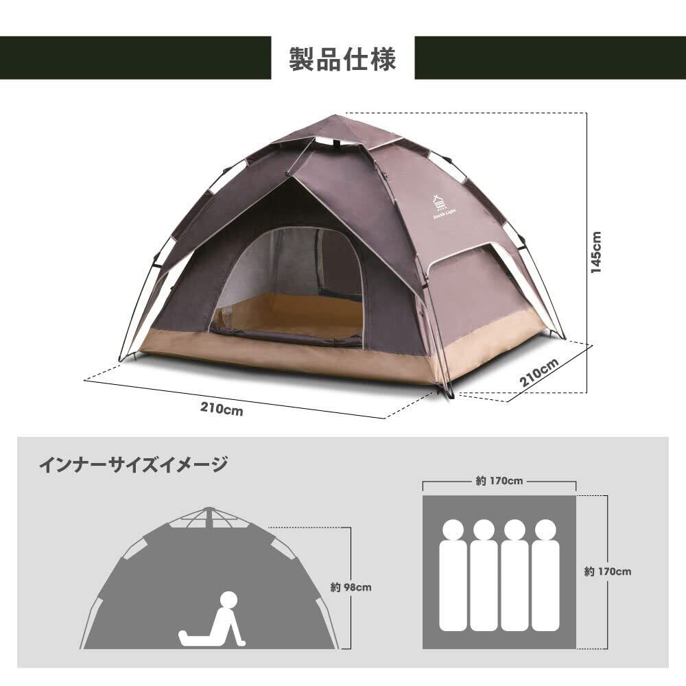 【サインキングダム 】ワンタッチテント 4人用 防水 キャンプテント ポップアップテント South Light テント 簡単設営 防風防水 通気性に優れ 多機能 軽量 お花見 防災 登山 釣り 収納バック付き キャンプ アウトドア tent outdoor sl-zp210-iv