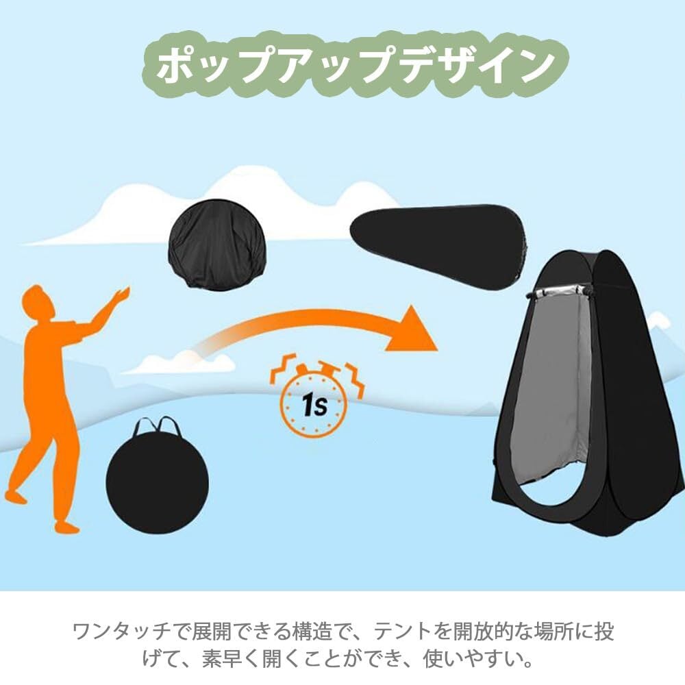 【多目的に使用可能】シャワーテントや着替え用テント、アウトドアテント、防災テント、簡易トイレテントなど様々な用途に使えます。旅行やキャンプ、釣り、海水浴など、さまざまな場面で活躍します!(ご注意:何か問題があれば、気楽にご連絡してくださいませ、ソリューションを提供します。)
