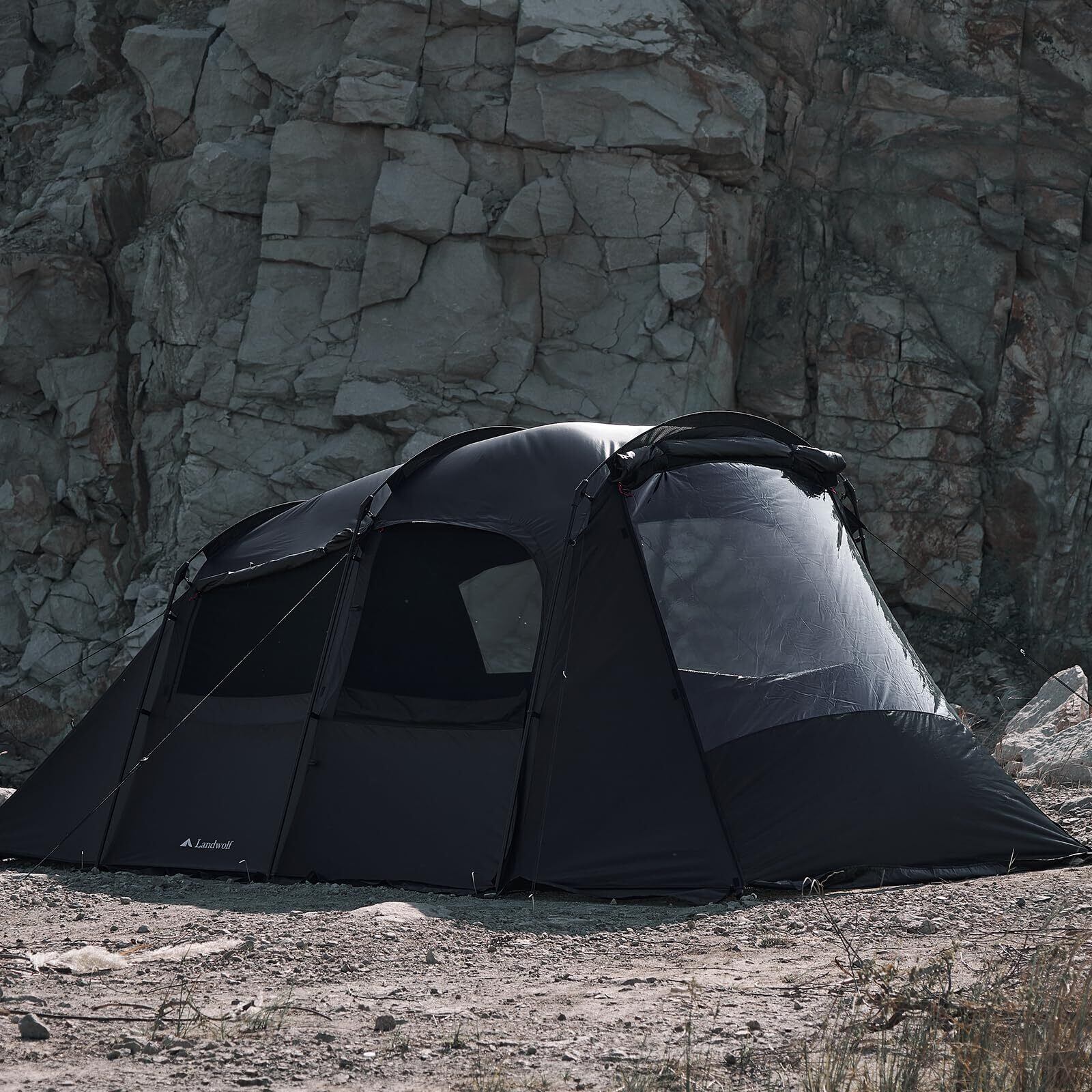 【耐久性とハイクオリティの材質】外部では150Dシルバーコーティングしたオックスフォードを利用し、有効的に紫外線防止でき、そして防水加工も行っており、pu2000㎜~3000㎜。インナーテントには190Tポリエステル+高密度メッシュ網の材質。テント底部に150Dオックスフォードでpu3000㎜で耐圧力抜群。雨の日でも安心にキャンプする。シルバーコーティングしたため、遮光率アップされた上遮熱UVカットも上昇して夏でも快適に使用できる。防水加工を重視してデザインしたので、雨も風の日にもキャンプに楽しめる。