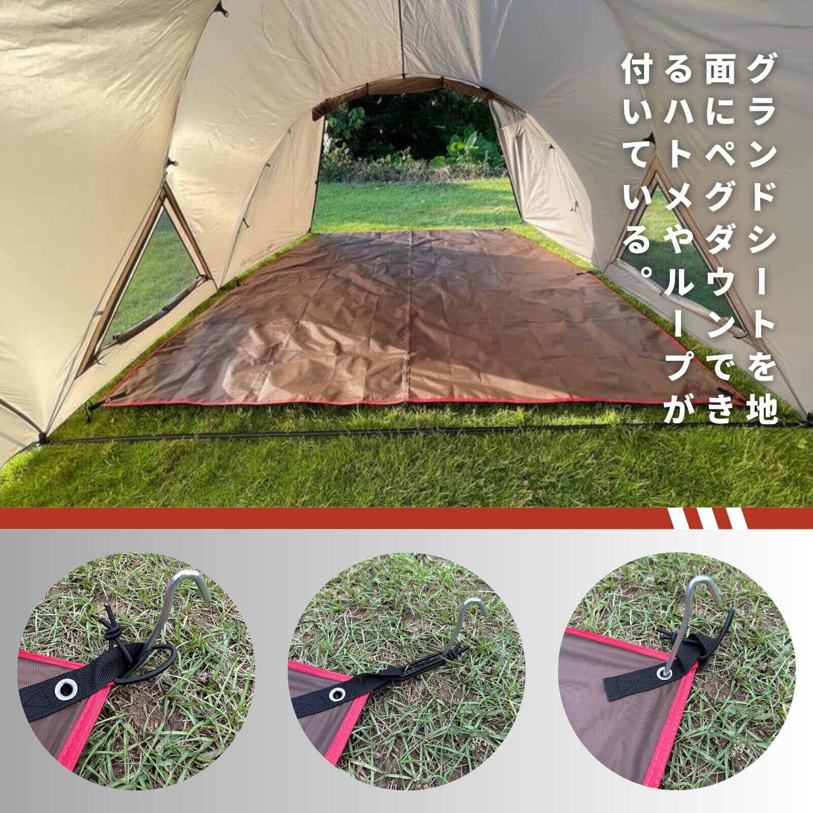 【高い品質】 インナーテントが汚れるのが嫌だったので購入しました。 今までブルーシートで代用していたが、この形は角を作るのが面倒でした。 専用グランドシートのでぴったりサイズはテントに合っているのが良いと思い購入しました。 持っていて損はないグランドシートです。 朝露、雑草、虫、泥そして灼熱…状況はタイトでしたが、グランドシートは汚れいなく撤収が楽でした! 生地も丈夫で中々良いです。軽くて、設置も簡単でした。