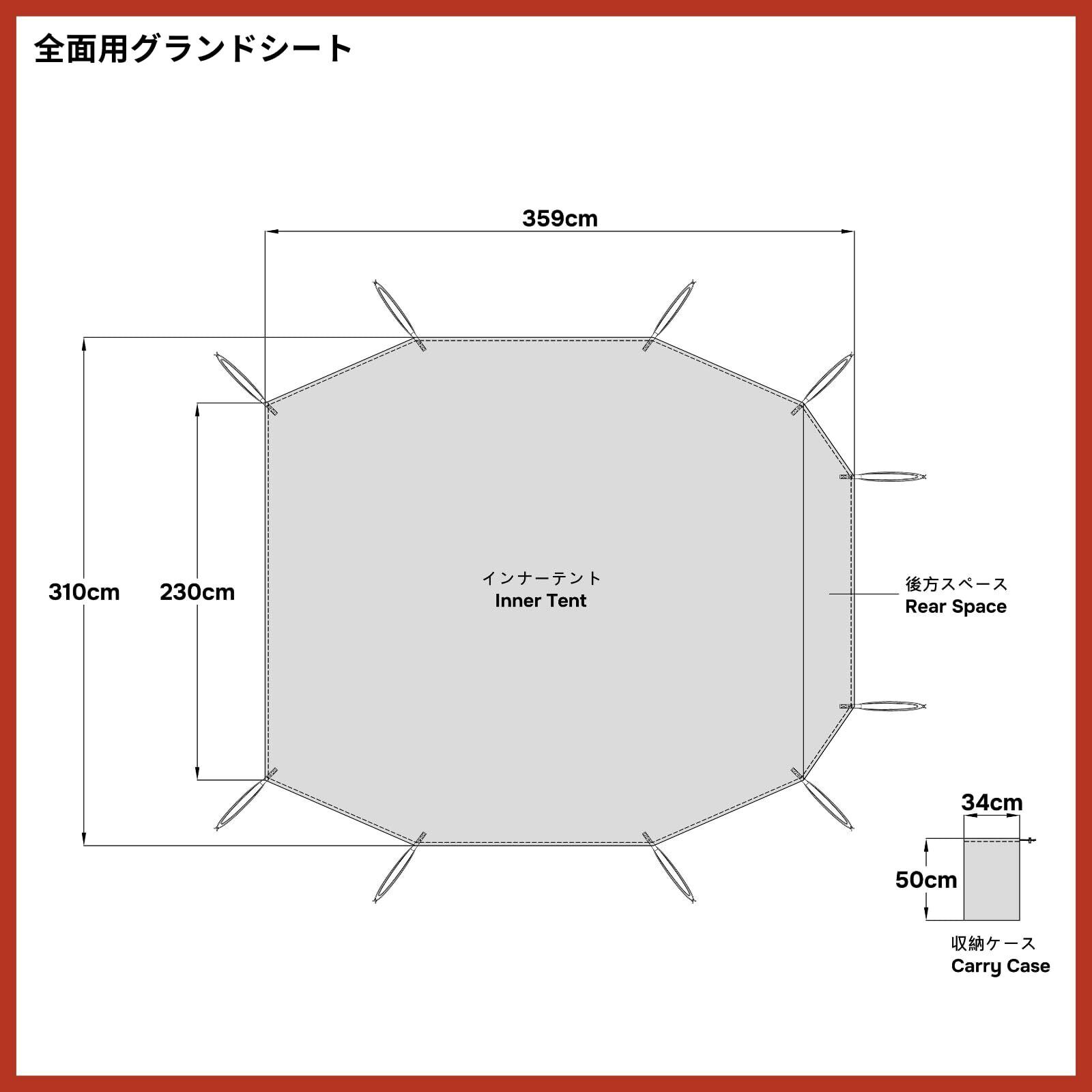 【新着商品】グランドシート テントアクセサリ 防水シート フットプリント ハトメつき 収納袋付き アウトドア キャンプ ※テント本体は含まれません【スノーピーク代替品】 (ドックドーム Pro.6 代替品 インナーテント用(後室含む))